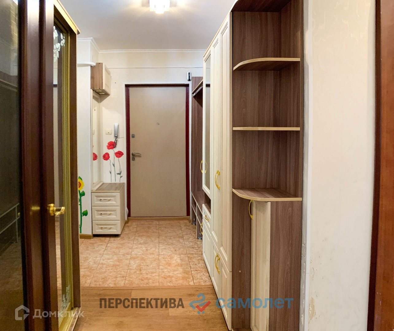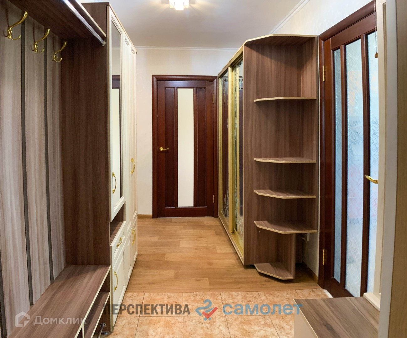 -на полу линолеум, частично ламинат и плитка при входе, двери межкомнатные из натурального массива, потолки выравнены.