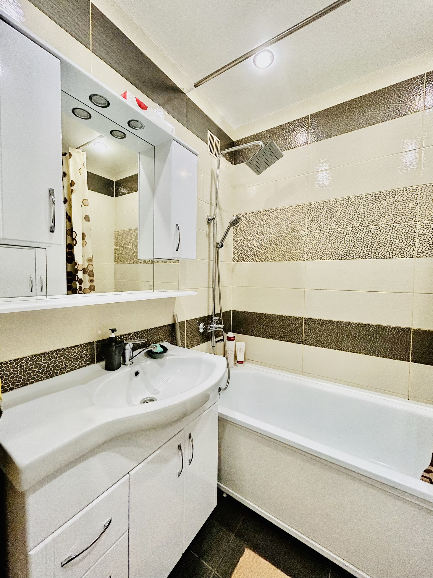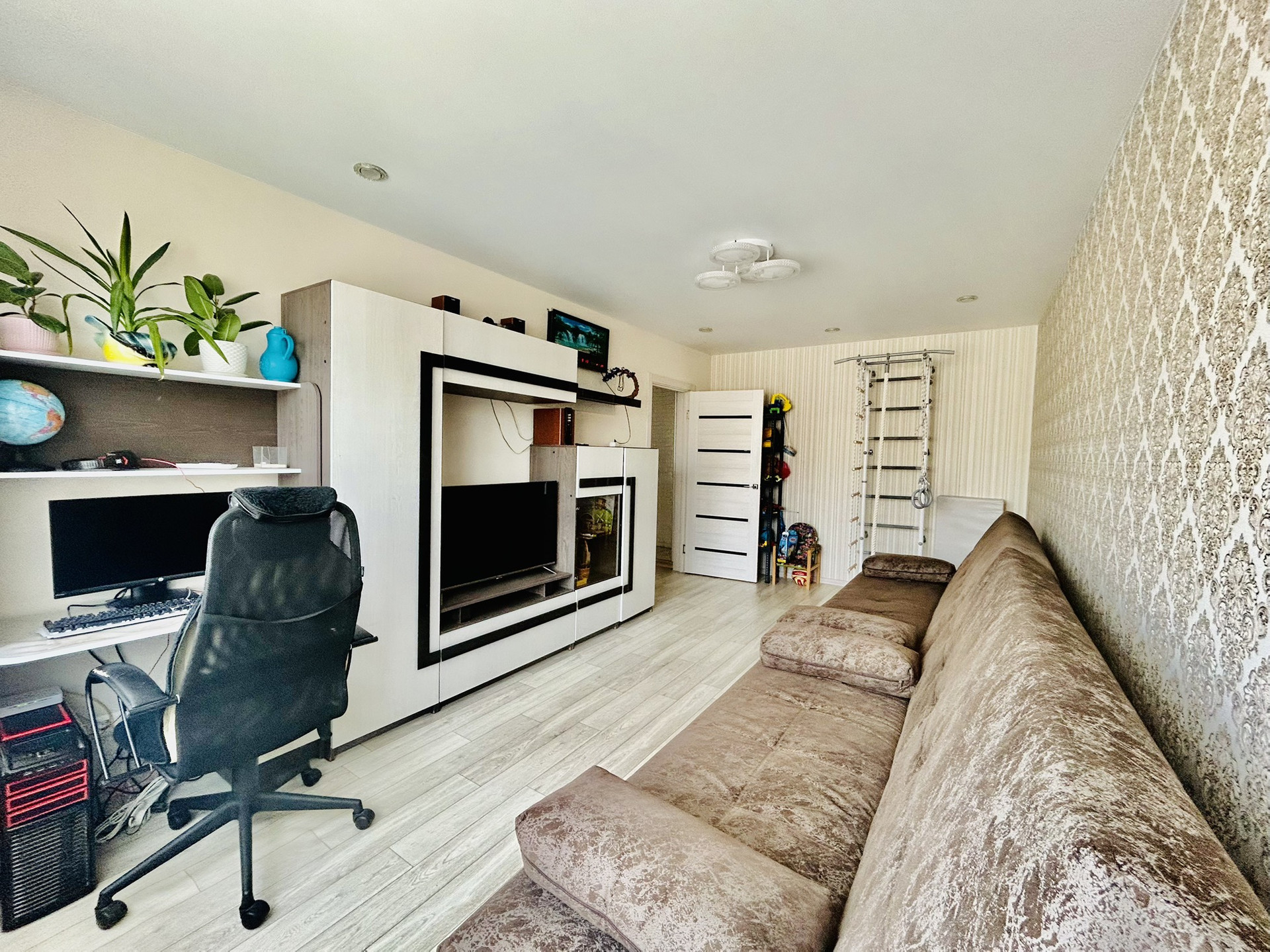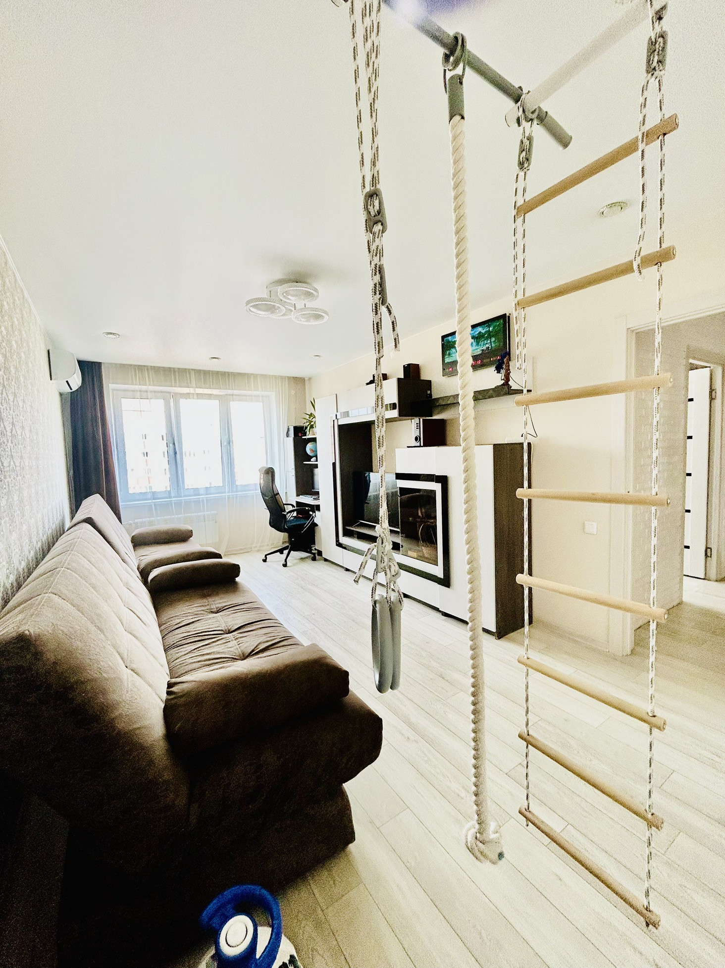В квартире выполнен качественный ремонт, делали для себя. Поменяли всю электропроводку, ванная и санузел в новом современном кафеле. Установлен кондиционер. Квартплата  небольшая, автономное отопление с поквартирными счетчиками. Аккуратный и чистый подъезд. Остается новый кухонный гарнитур. Во дворе по периметру дома имеются камеры видеонаблюдения, расположен большой паркинг.