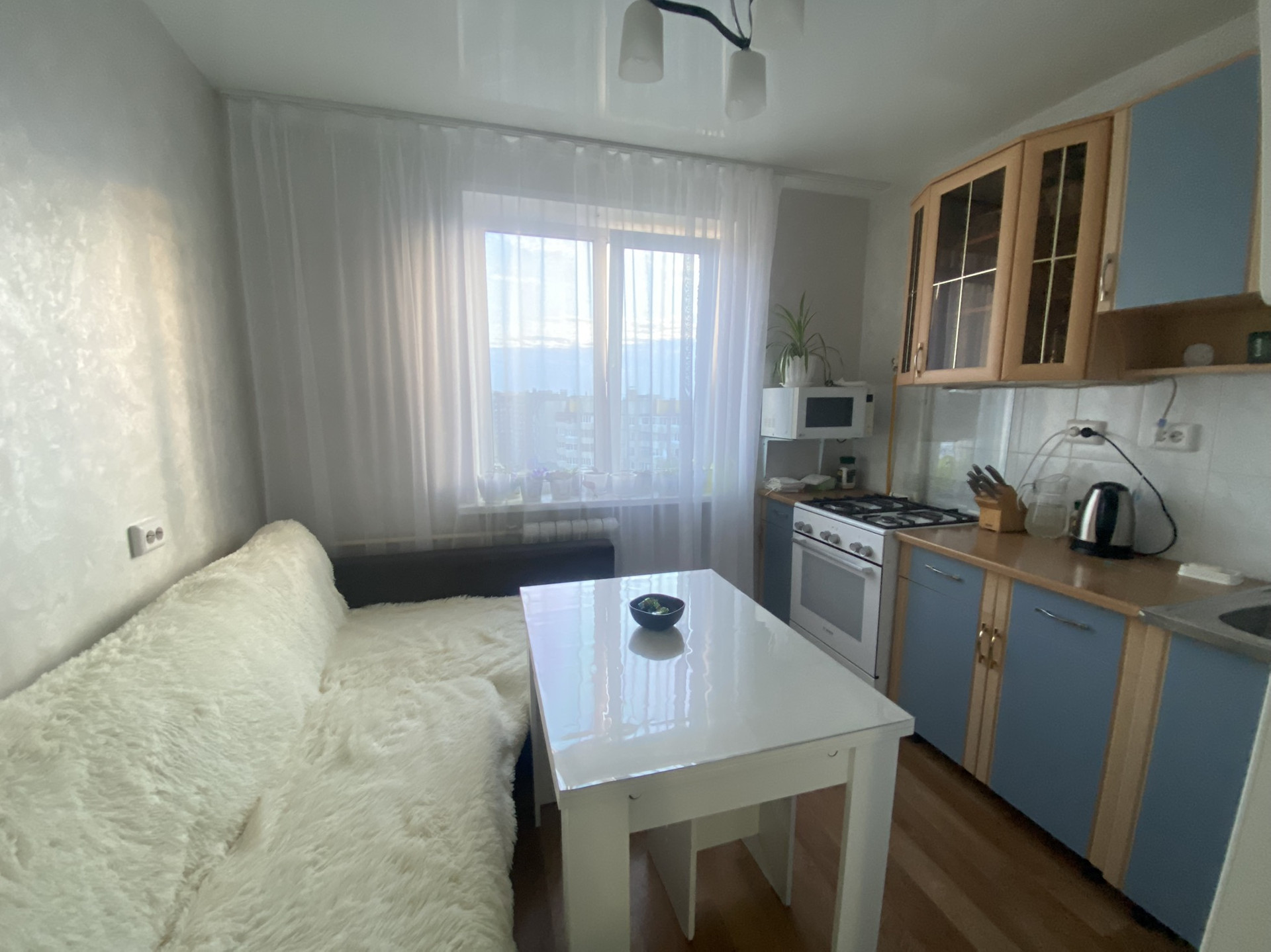 В продаже однокомнатная квартира с дизайнерским ремонтом. Ремонт выполнен в светлых тонах с использованием качественных материалов. Потолки натяжные,на полу линолеум, в санузлах установлены теплые полы.