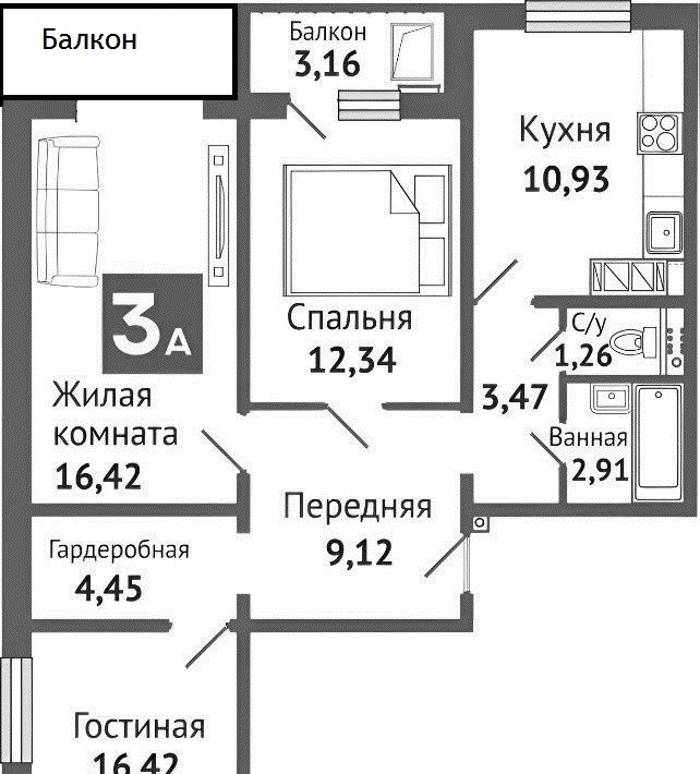Общая площадь 84 м2