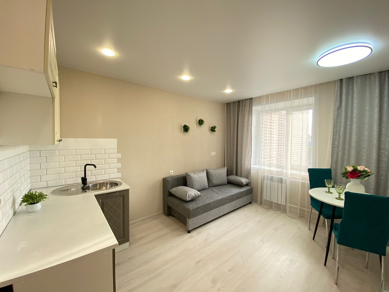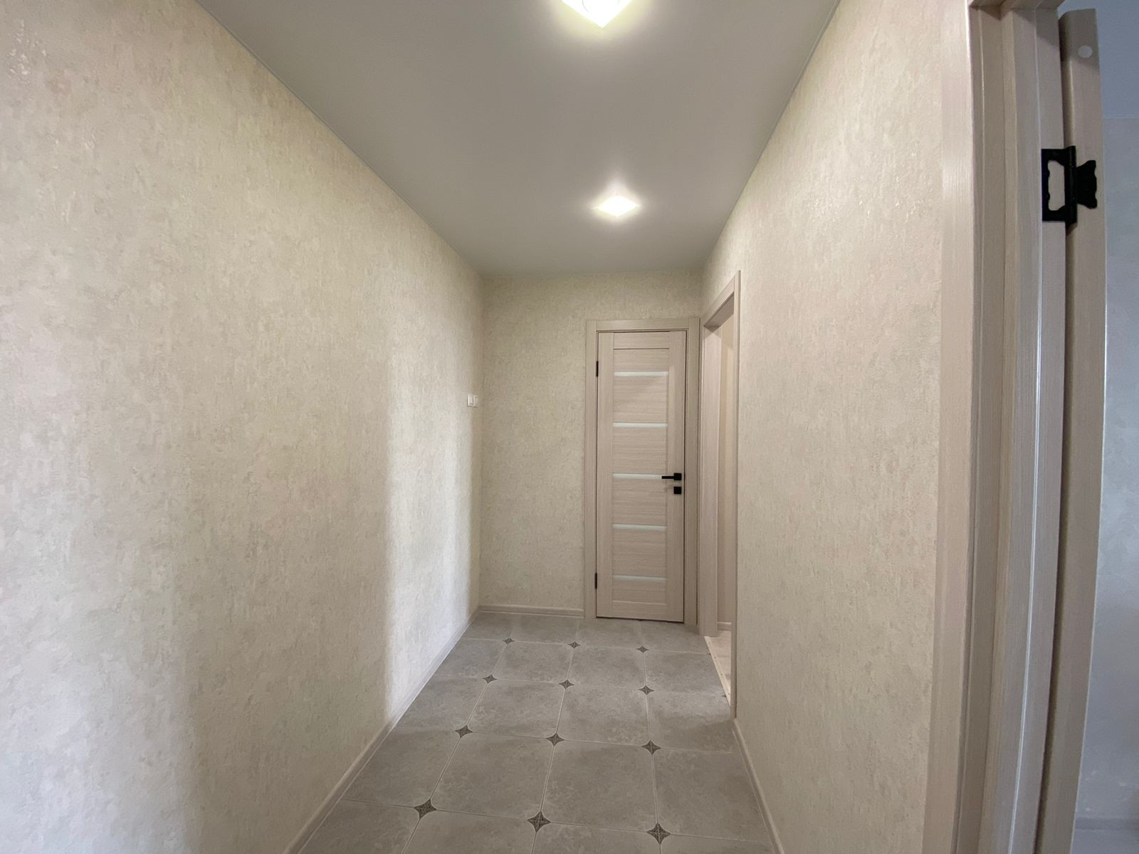 В квартире сделан свежий ремонт. Никто не жил. Использованы качественные материалы. На полу в комнатах использовался ламинат, в коридоре плитка. Потолок натяжной, окна пластиковые. Сан узел в кафеле.