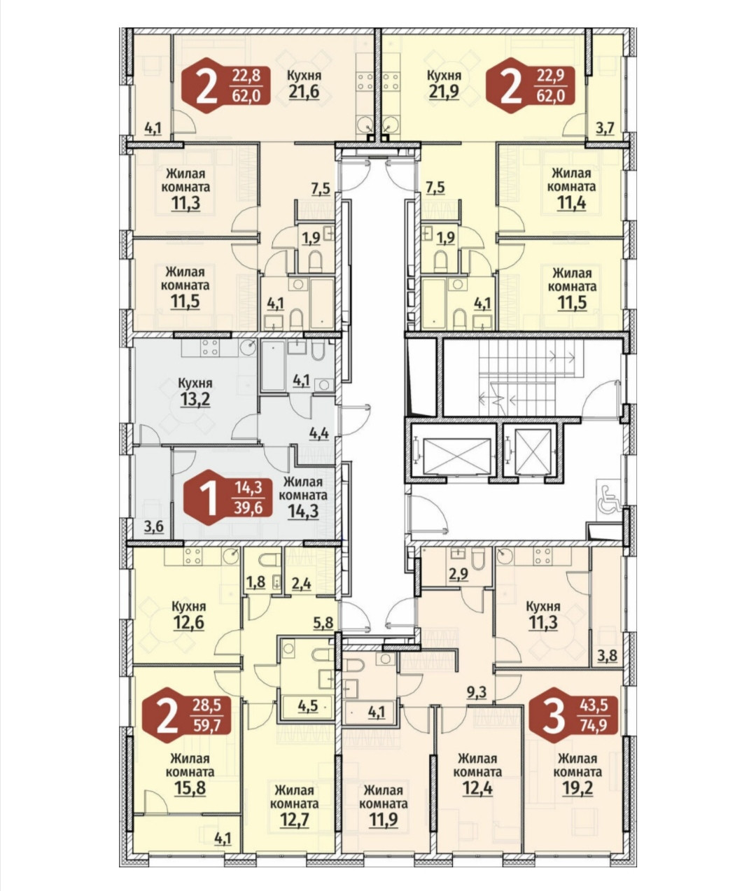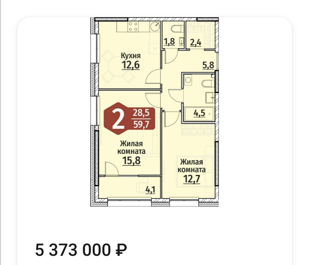 Общая площадь 59.7 м2