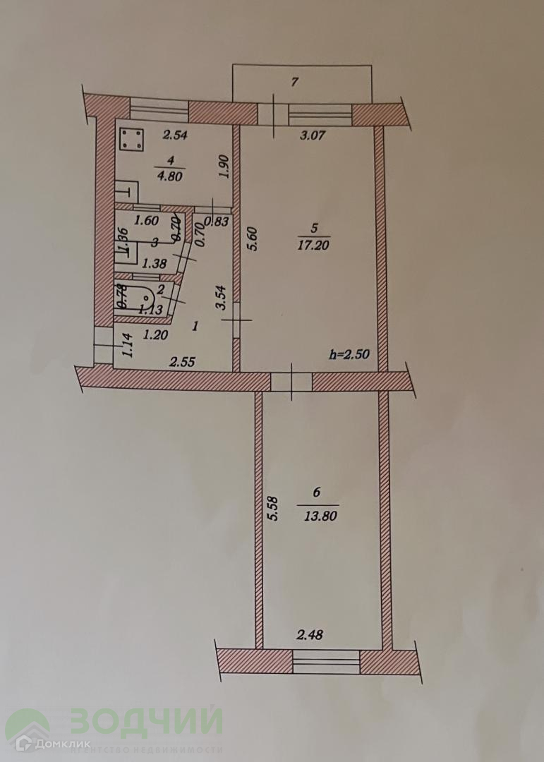 Общая площадь 44.2 м2