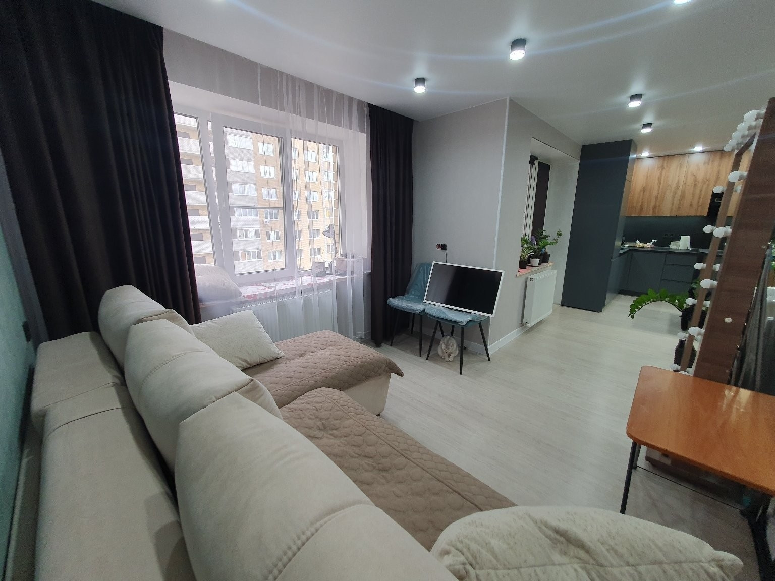 -квартира заезжай и живи.Кухонный гарнитур остаётся  новым жильцам.На ремонт не жалели средств,все с душой и со вкусом