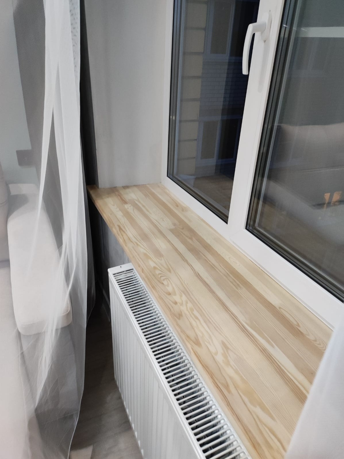 -окно пластиковое в гостиной заменили на новое. Подоконники в современном стиле(деревянные)