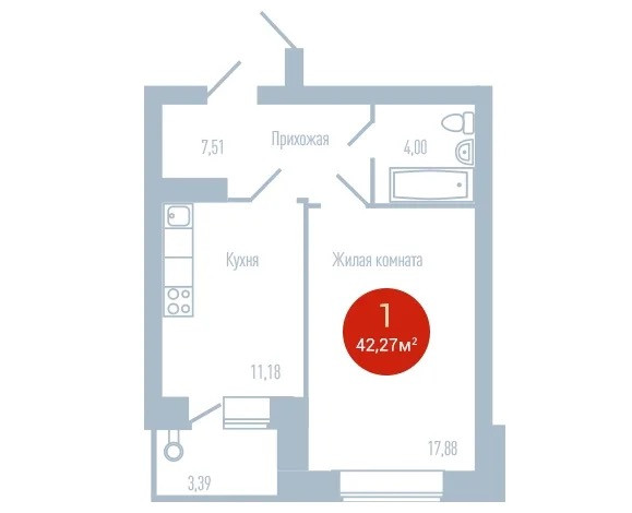 - жилая комната разделена на спальную зону и зону гостиной