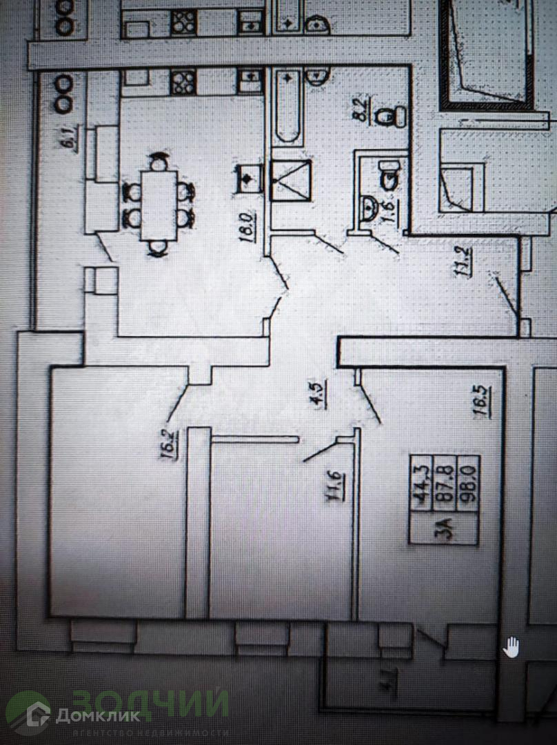 Жилая площадь 44.3 м2
