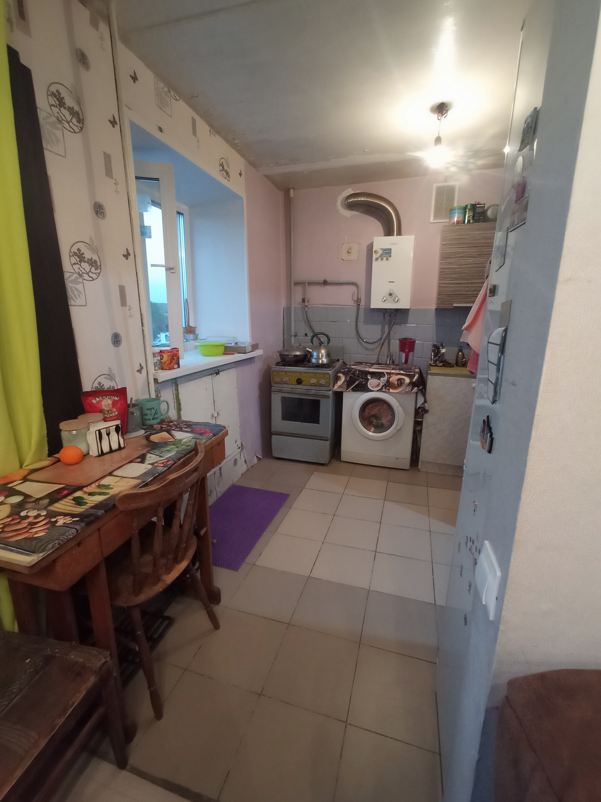 Пластиковые окна, ремонт в ванной комнате, деревянный пол заменён на бетонный,на полу линолеум в жилой комнате и плитка в прихожей и кухне, новая проводка и коммуникации, новый современный обогреватель воды, горячая вода всегда есть. Можно заехать и жить без серьёзных  вложений. Один собственник. Без обременений.