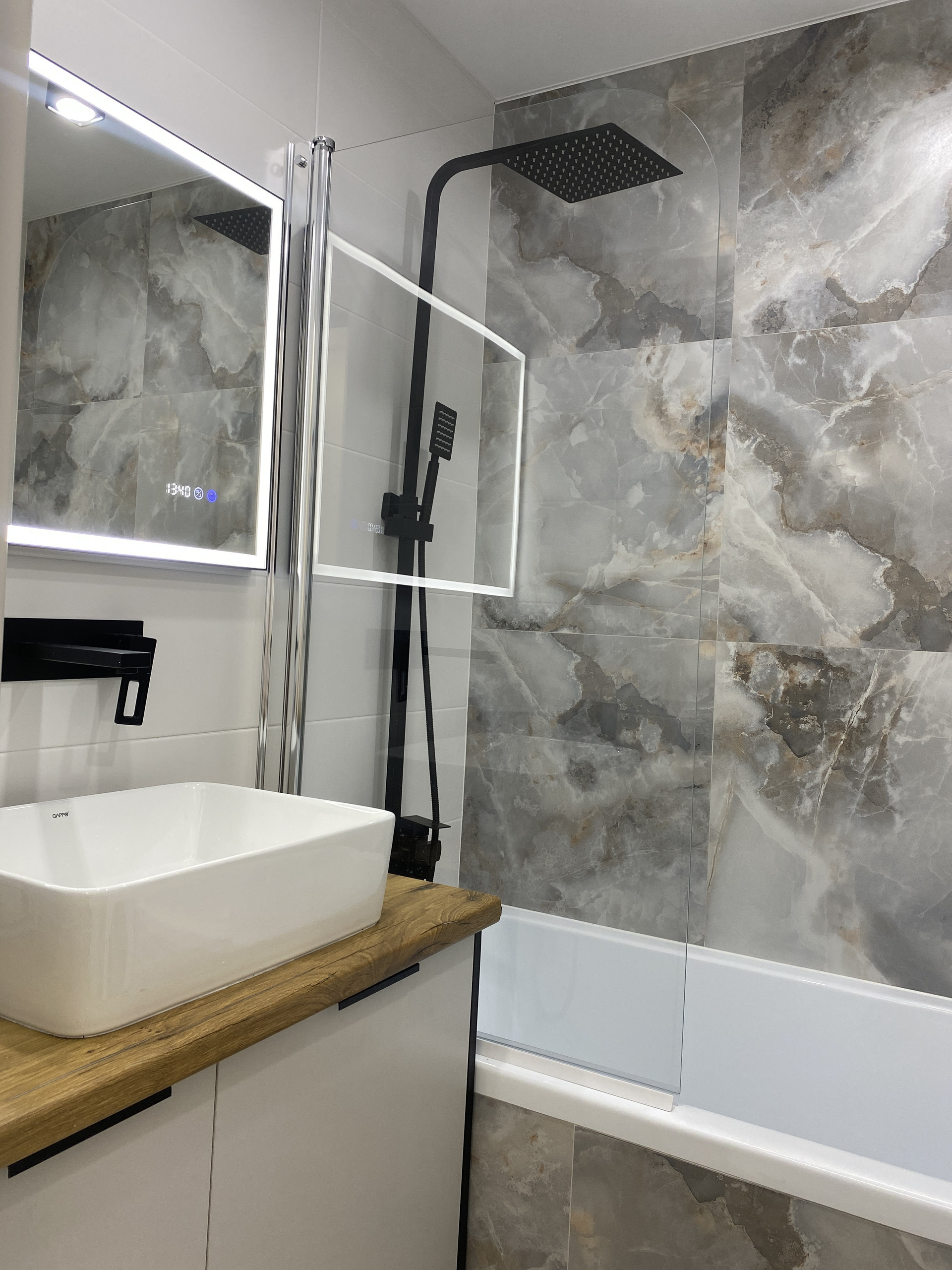В квартире выполнен ремонт из качественных материалов. В коридоре, ванной комнате, туалете, на кухне и балконе полы выложены плиткой (везде установлены тёплые полы). В ванной комнате установлена акриловая ванна, тропический душ, стеклянная перегородка, установлена стиральная машина. в туалете; инсталляция, гигиенический душ, раковина. На кухне установлена; встраиваемая вытяжка, посудомойка, индукционная плита, духовой шкаф, микроволновка, холодильник, смеситель с фильтром для питьевой воды. Вся техника известных брендов с длительной гарантией. В комнате уложен водостойкий ламинат 33 класса, в спальной зоне установлена кровать с ортопедическим матрасом , шкаф, телевизионная тумба, комод-перегородка (между спальной и зоной отдыха).