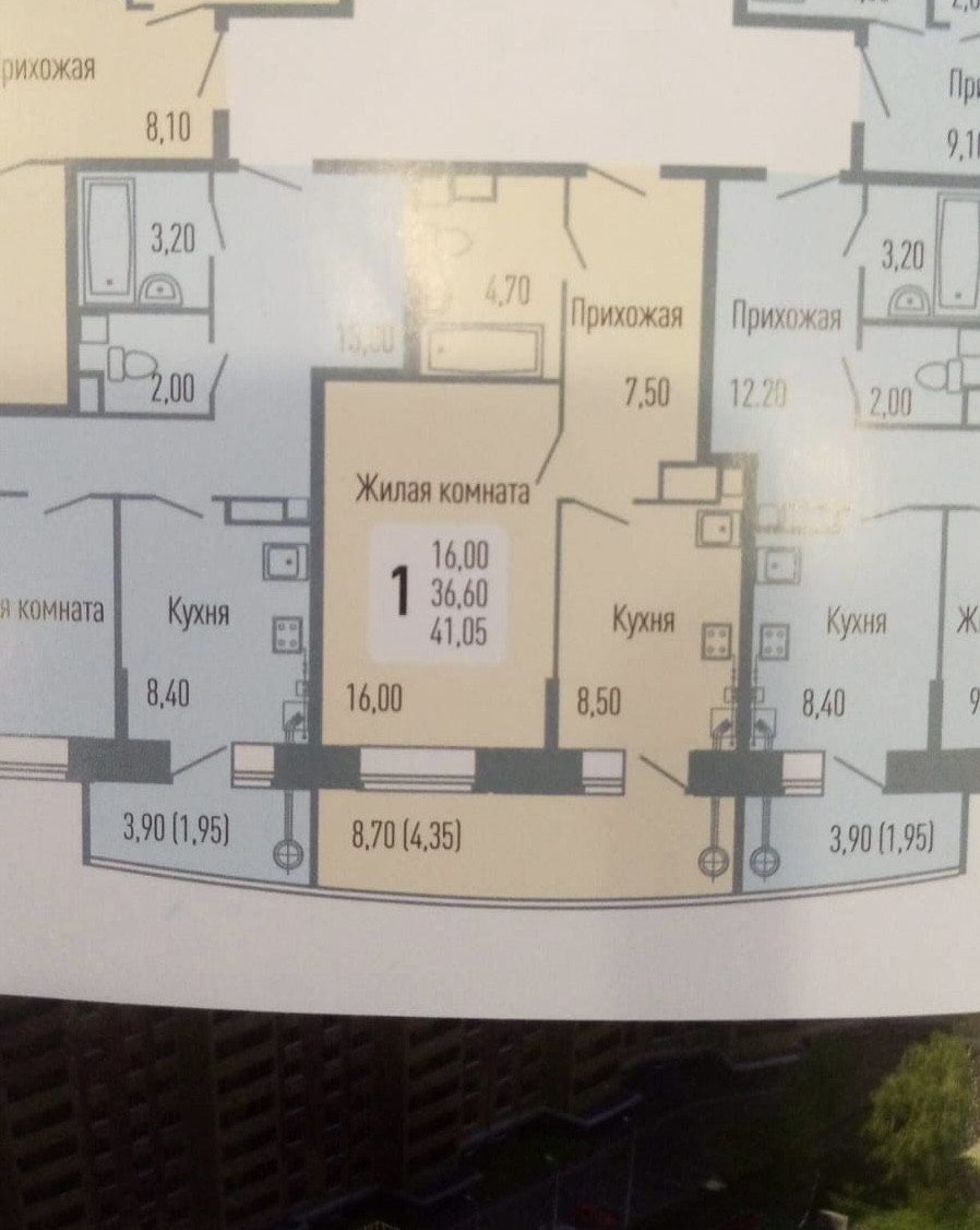 Общая площадь 41.05 м2