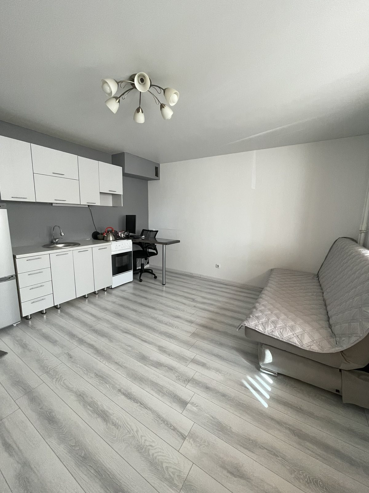 Продаю квартиру-студию в новом развивающимся микрорайоне, 30кв.м., с хорошим современным ремонтом, частично остается мебель, 1 этаж- высокий, окна пластиковые, с/узел в кафеле, имеется большой, просторный балкон, окна выходят во двор. Квартира с автономным отоплением, очень теплая, низкие коммунальные платежи. В микрорайоне строится школа, функционирует 2 садика, имеются различные магазины.