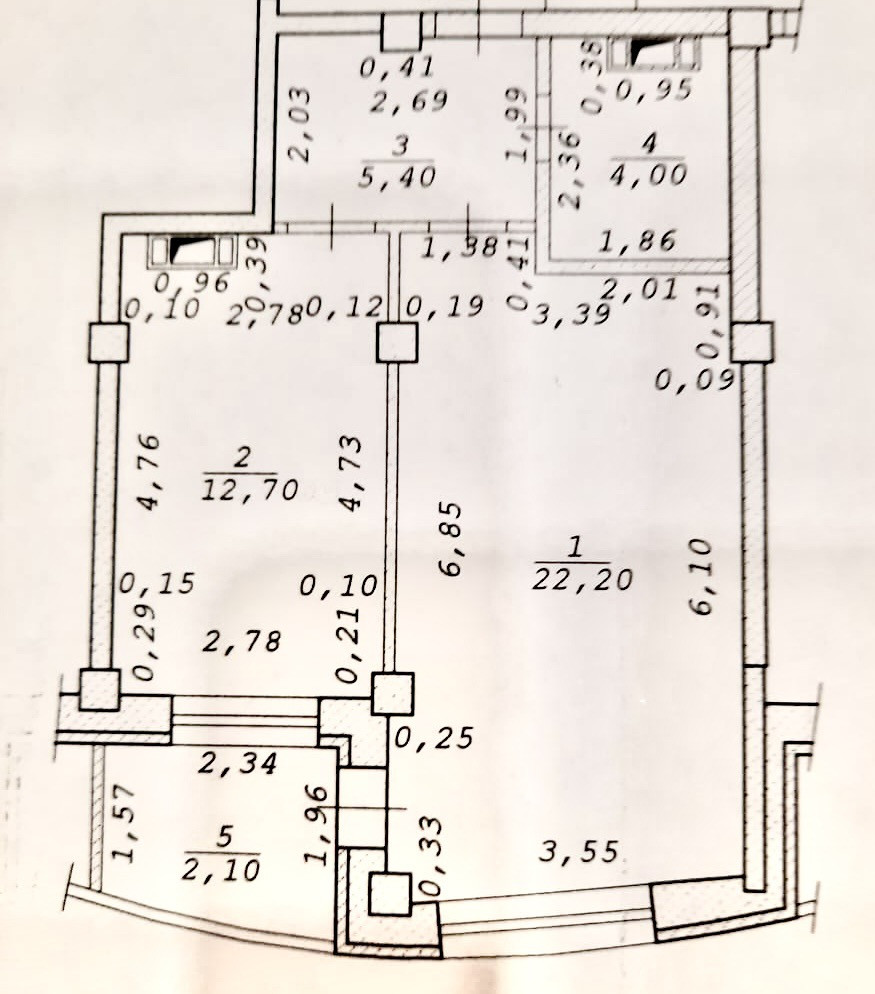 Жилая площадь 22.2 м2
