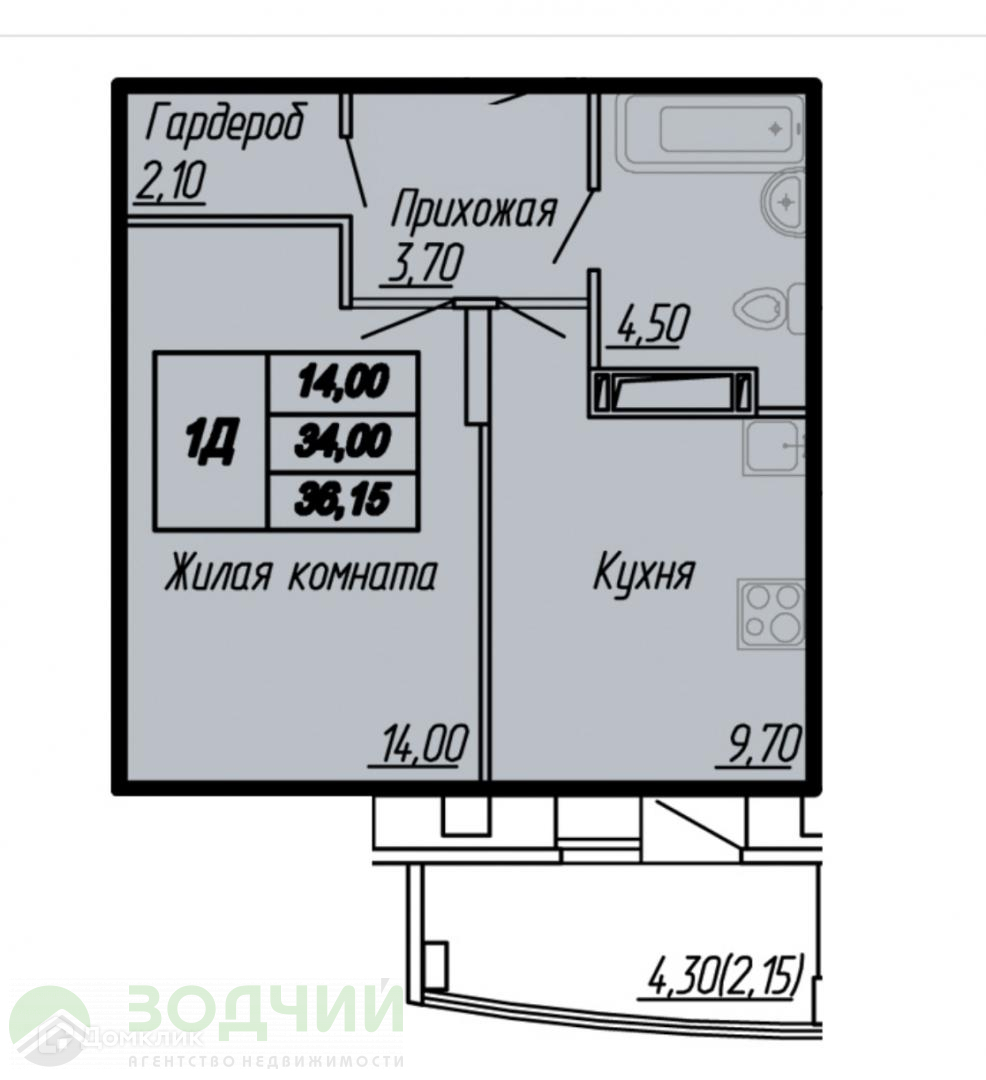 Балкон, лоджия 1 балкон
