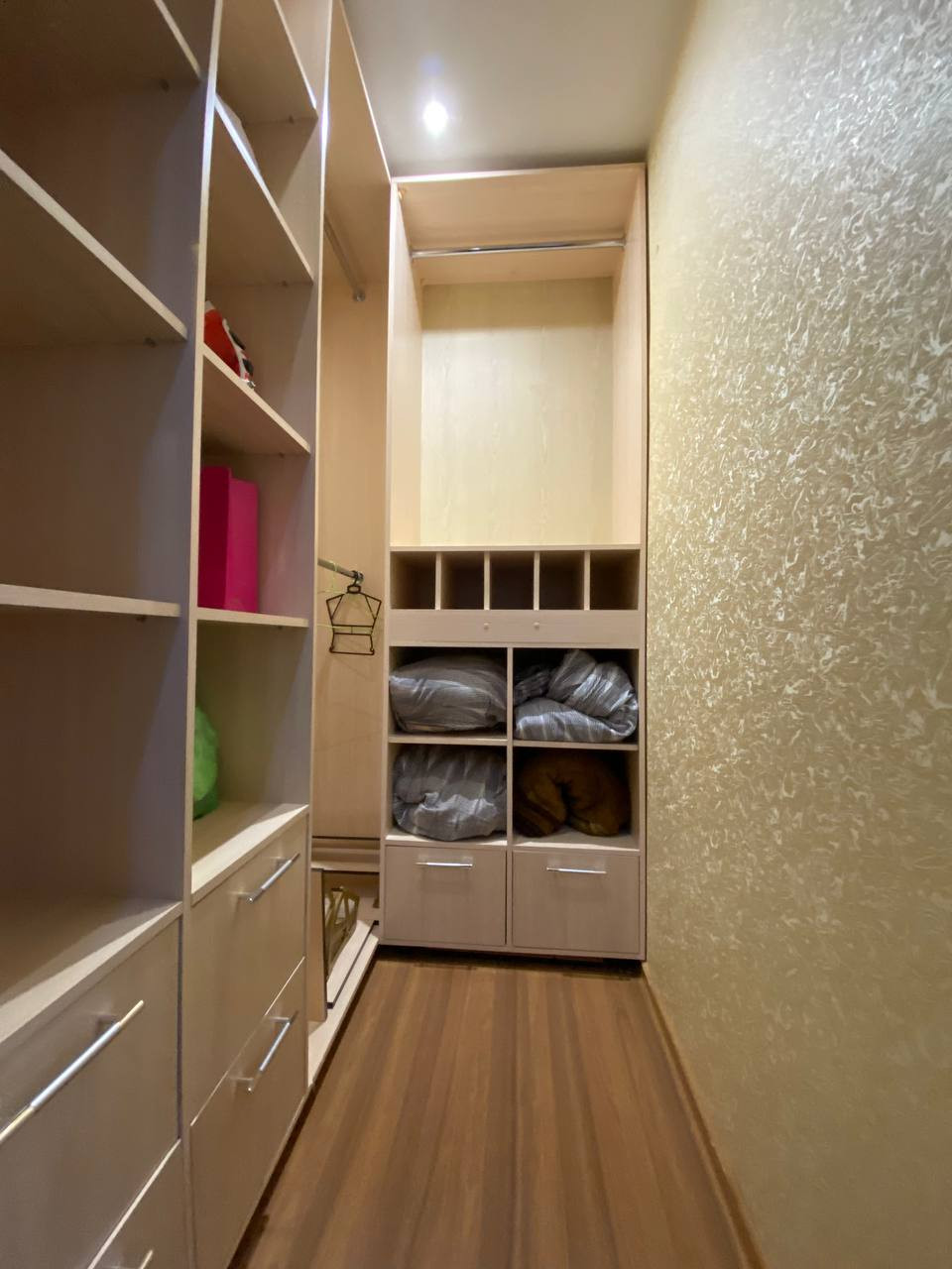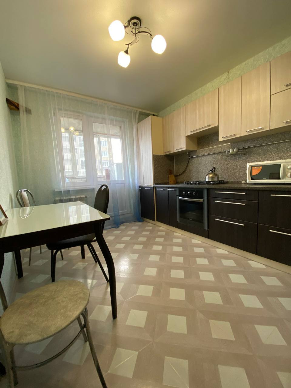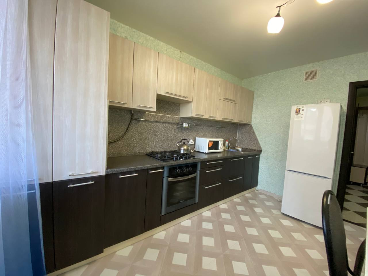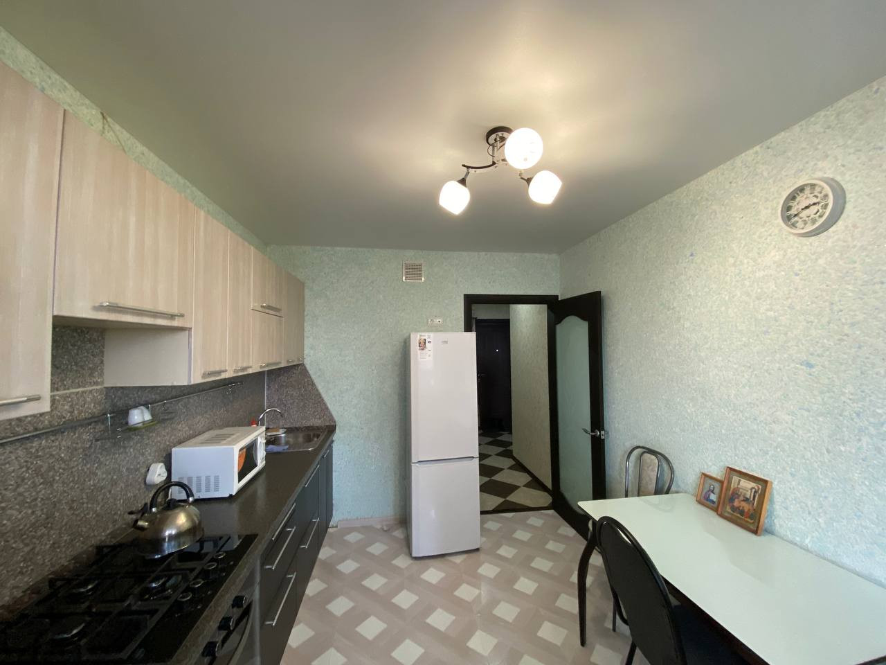 Квартира: остается кухонный гарнитур со встроенной варочный газовой панелью, вытяжкой, диван, тумба под телевизор, своя гардеробная. Сан.узел раздельный, балкон из кухни, можно заехать и жить.