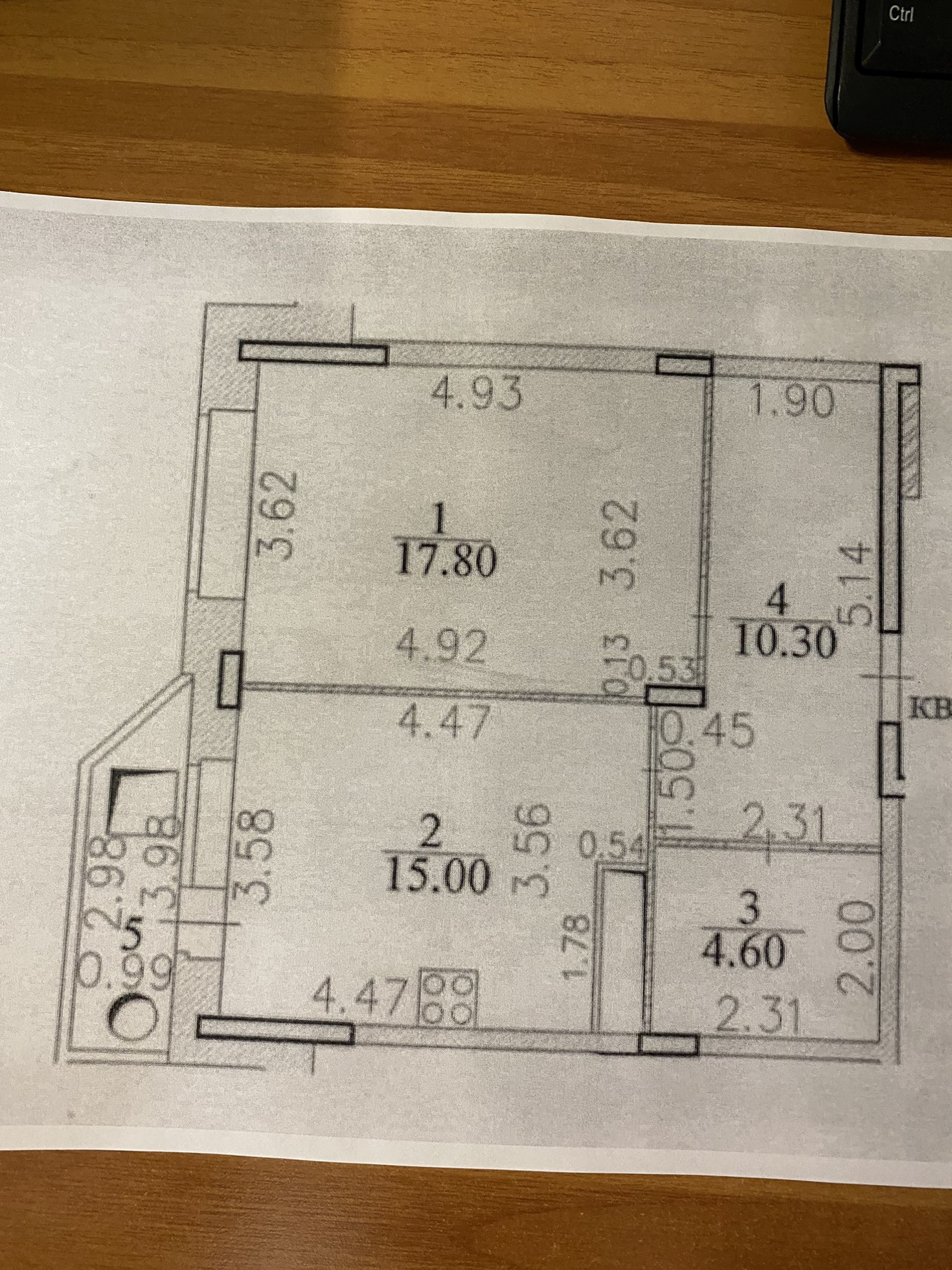 Жилая площадь 17.8 м2