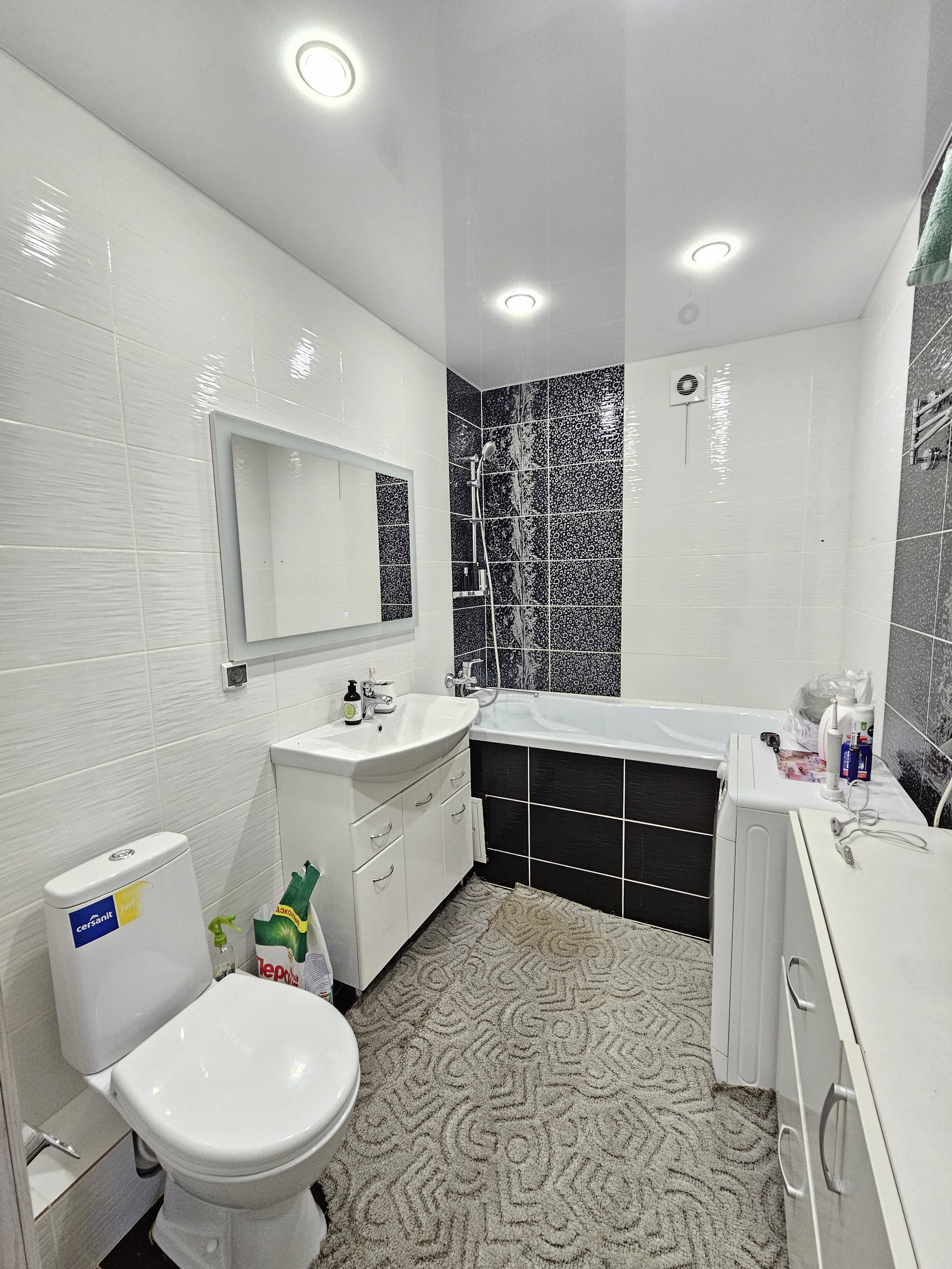 - совмещенный сан.узел в современном кафеле.