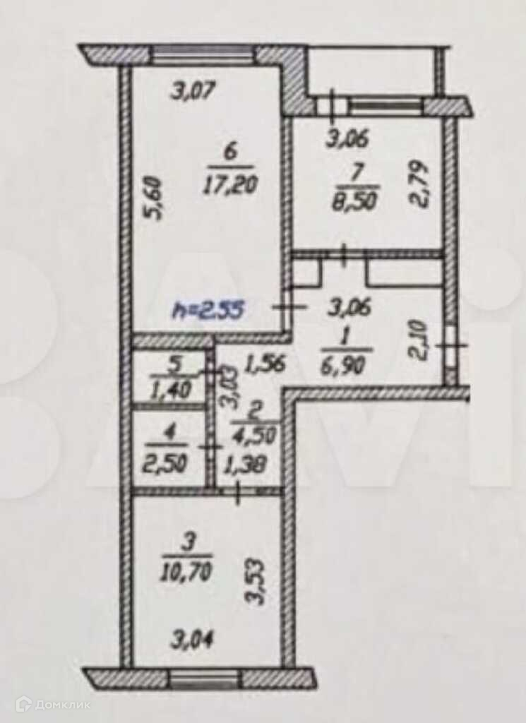Общая площадь 55.9 м2