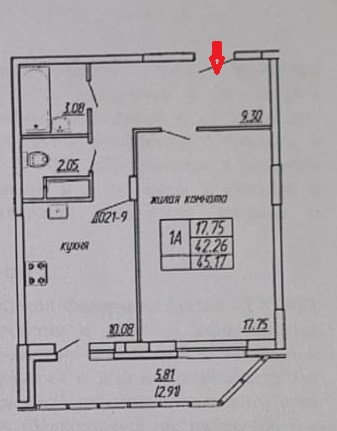 Жилая площадь 17.75 м2