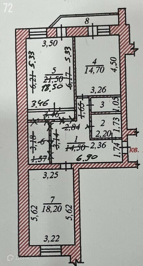 Жилая площадь 65.2 м2