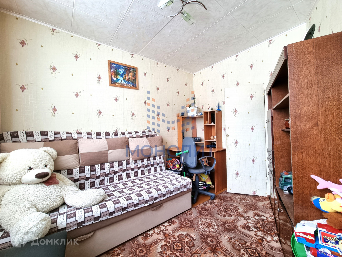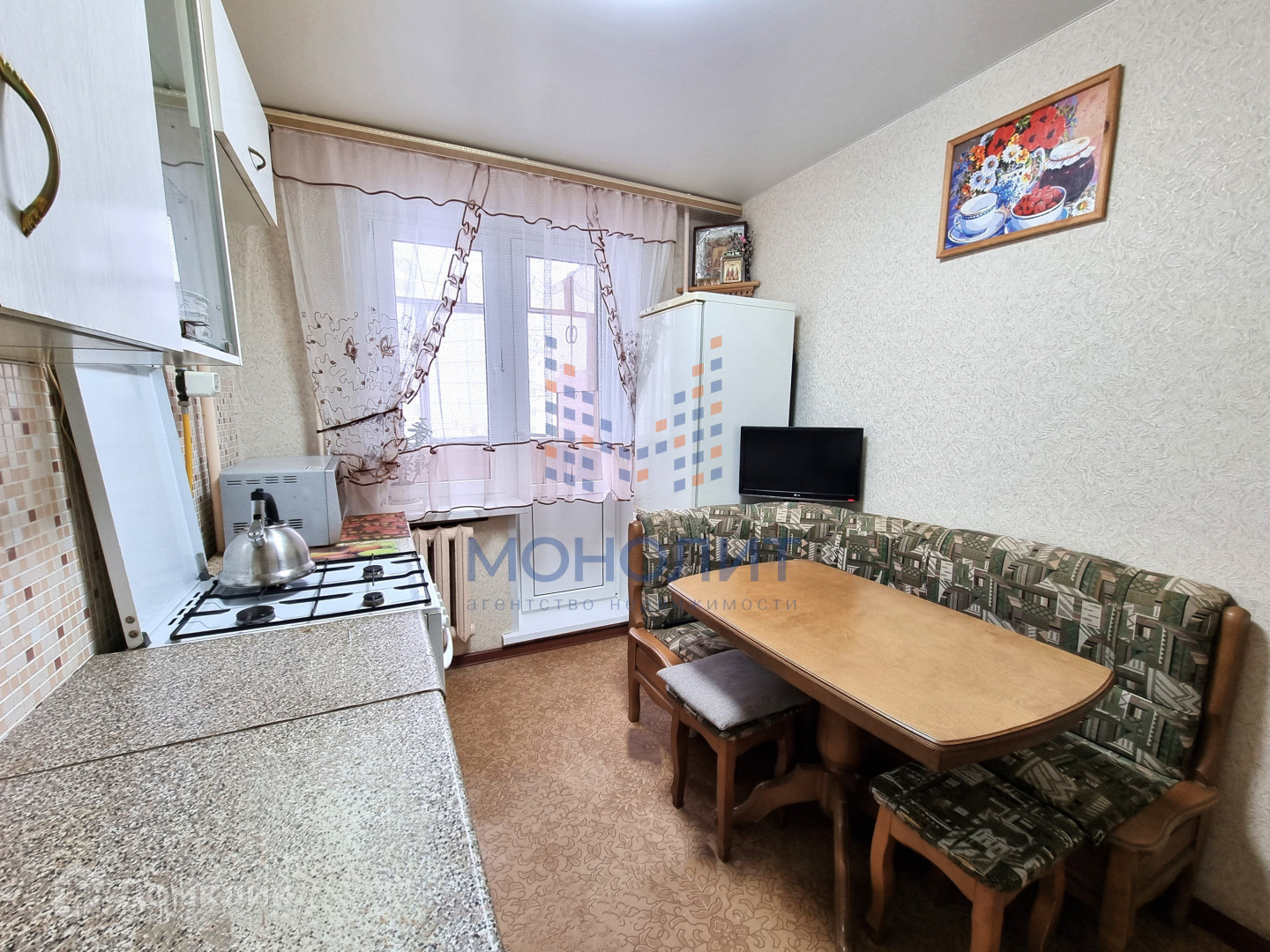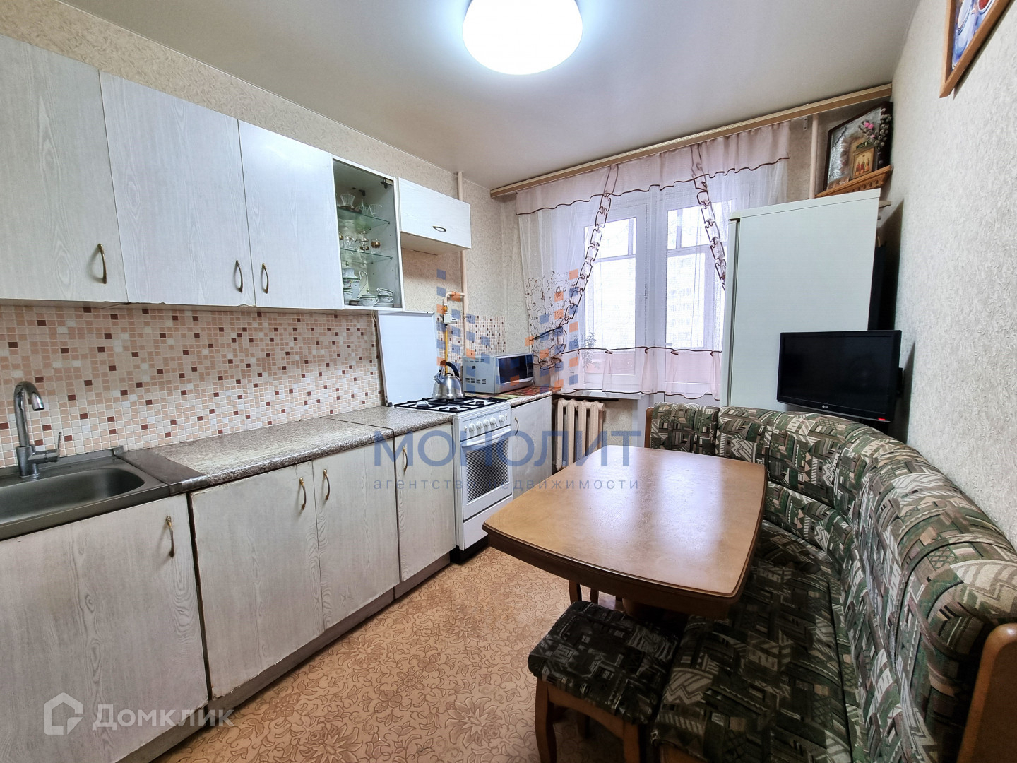 На полах линолеум, в коридоре и кухне натяжной потолок, на кухне и зале установлены новые пластиковые окна, заменены радиаторы отопления, санузел в современном кафеле, ванна акриловая, межкомнатные двери новые, качественные.