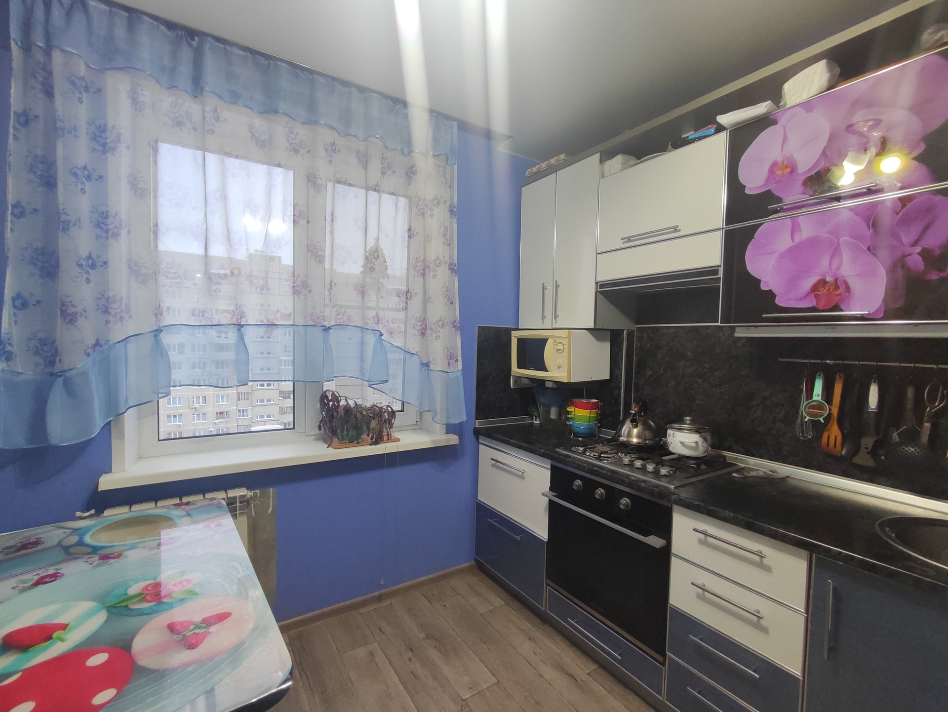 Квартира теплая и удобная для проживания; большая кухня. Окна выходят на запад, благодаря этому в квартире всегда светло и уютно; Есть тамбур на две квартиры. В стоимость входит кухонный гарнитур и мебель в прихожей.