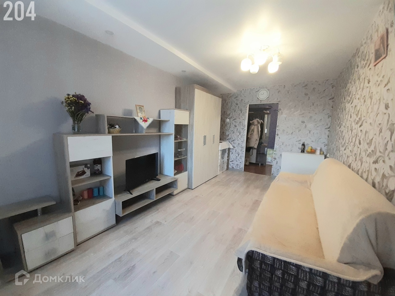 В квартире сделан частичный косметический ремонт. На полу качественный линолеум. В комнатах натяжные потолки. Новая металлическая входная дверь. Санузел совмещенный, требует ремонта. Есть общая кухня на 3 квартиры