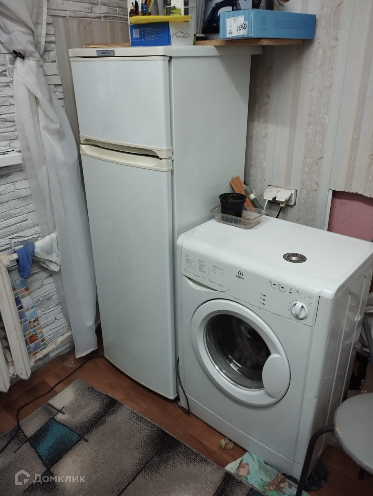 В квартире  две комнаты: в одной индивидуальный санузел, не как у других комнат на две семьи,  и кухня с  электрической плиткой с холодильником и стиральной машиной.