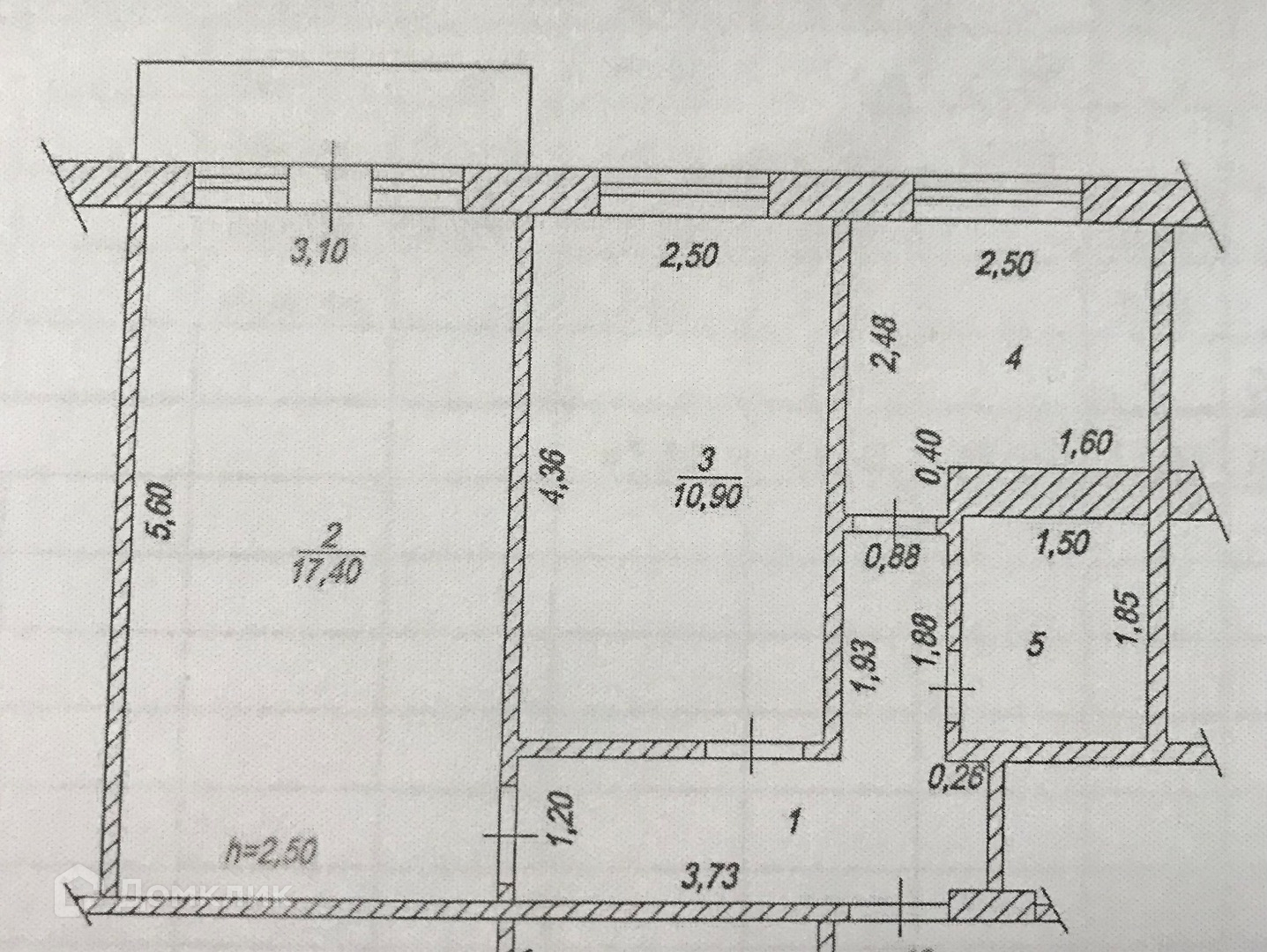 Общая площадь 43.1 м2