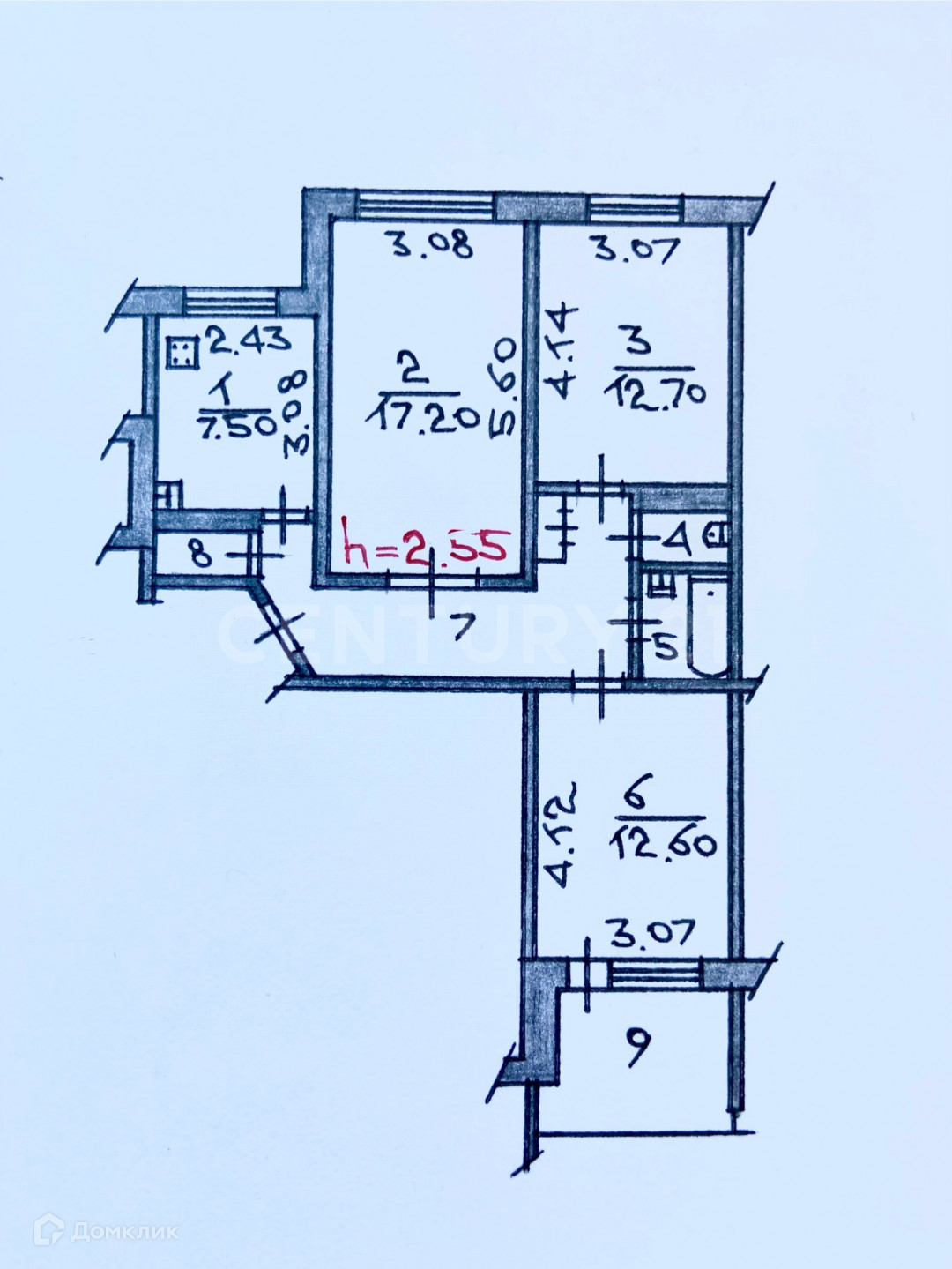 Высота потолков 2.55 м