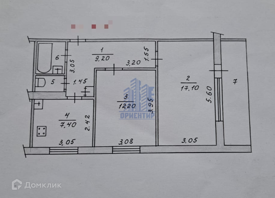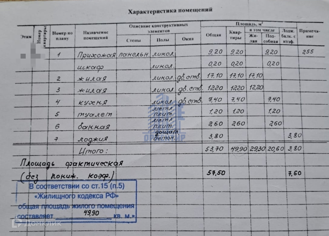 Общая площадь 57.5 м2