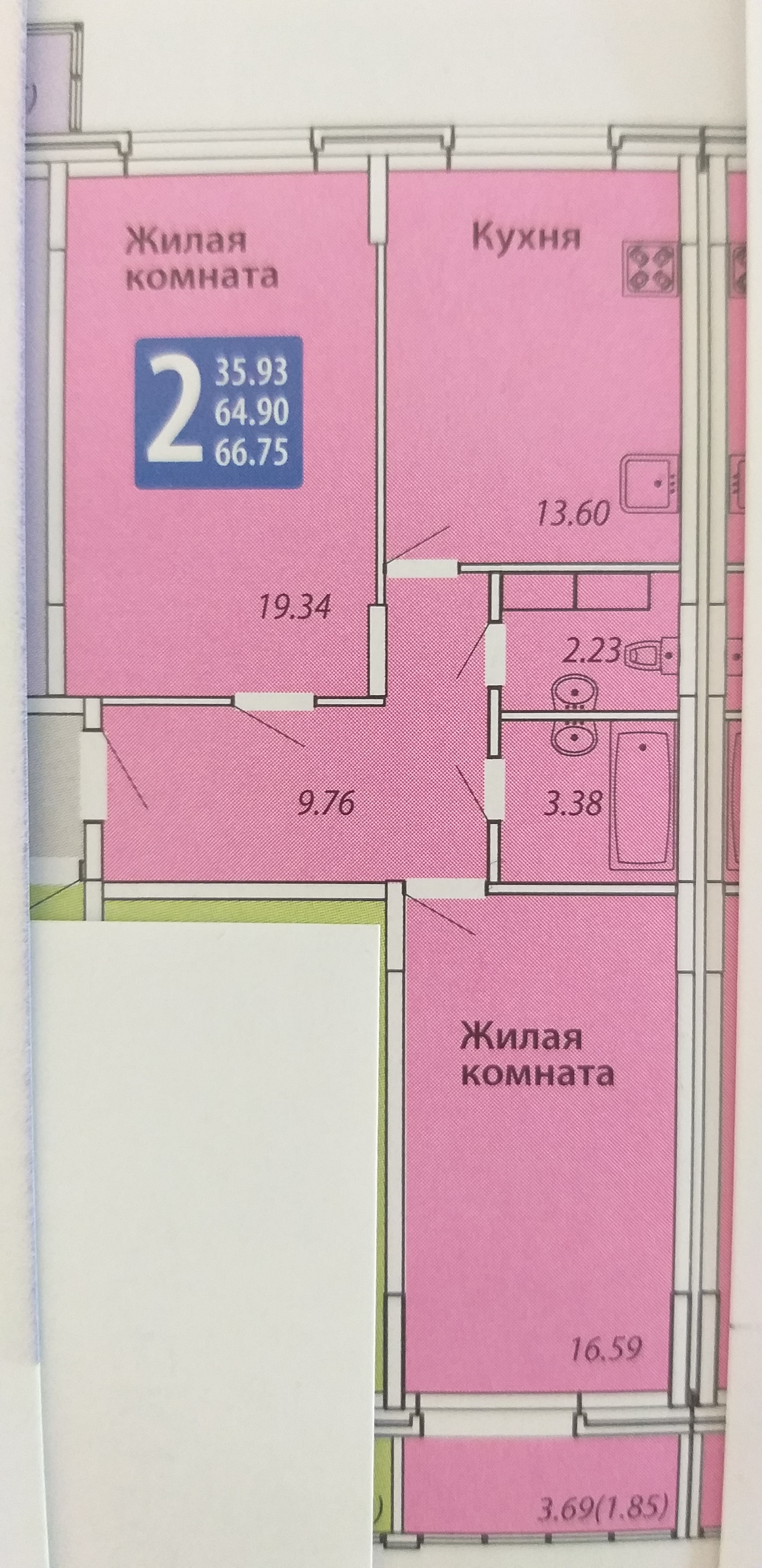 Общая площадь 66.75 м2