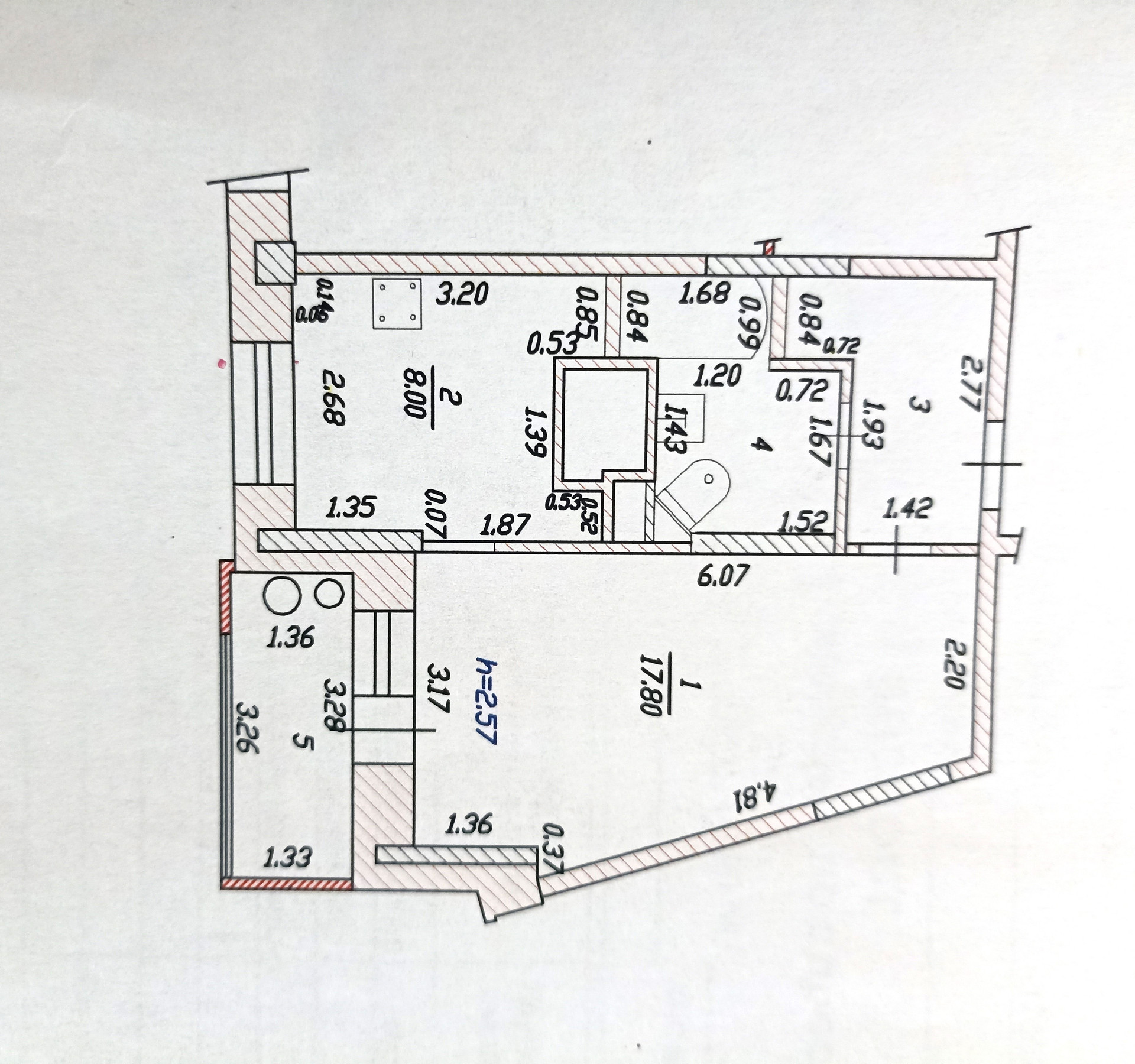 Общaя площaдь – 39,6кв.м., жилая – 17,8 кв.м., кухня – 8кв.м.