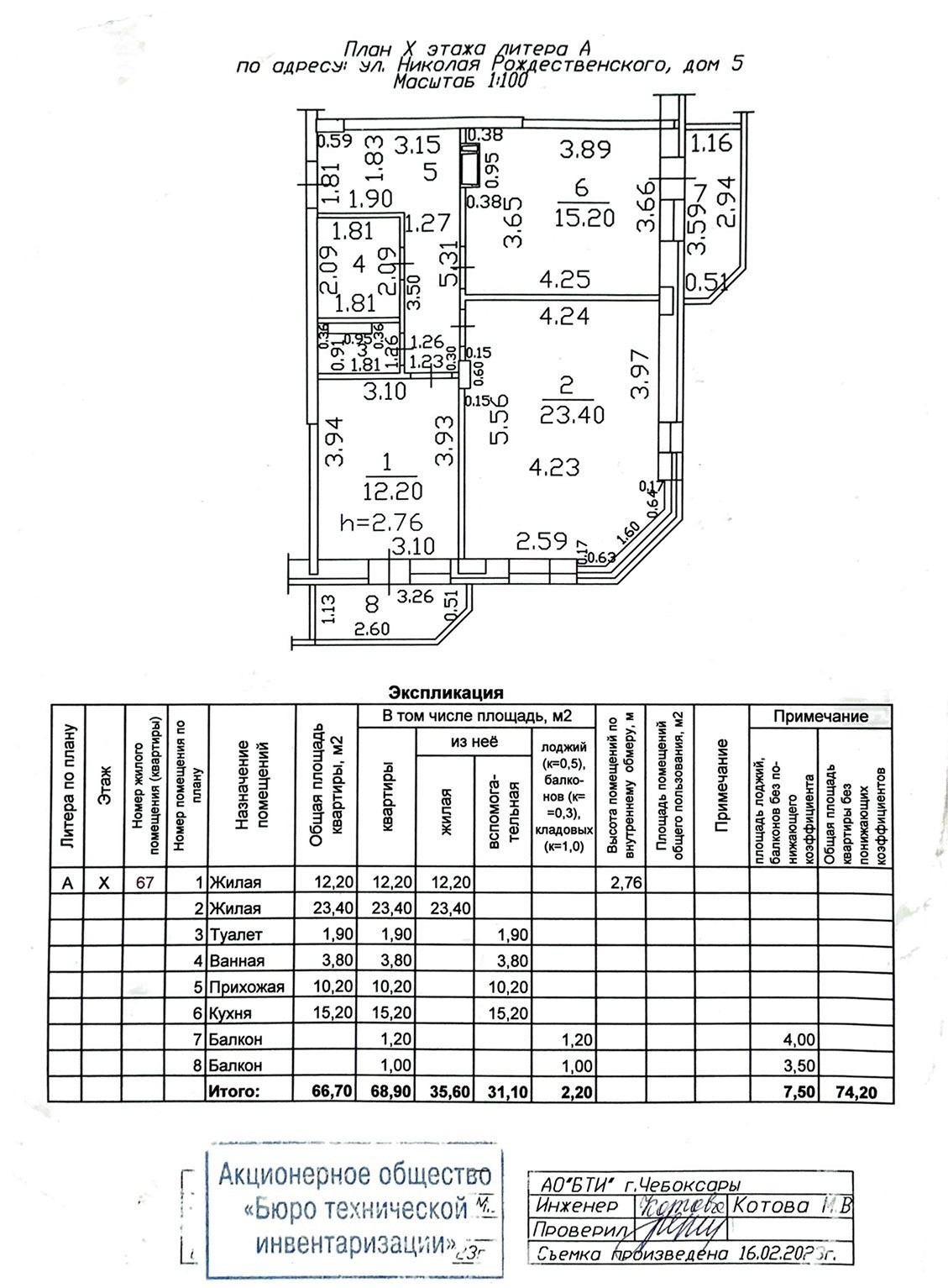 2-комнатная квартира, 66.1 м2, этаж 10 / 17, на продажу в Чебоксарах, улица Николая Рождественского, 5