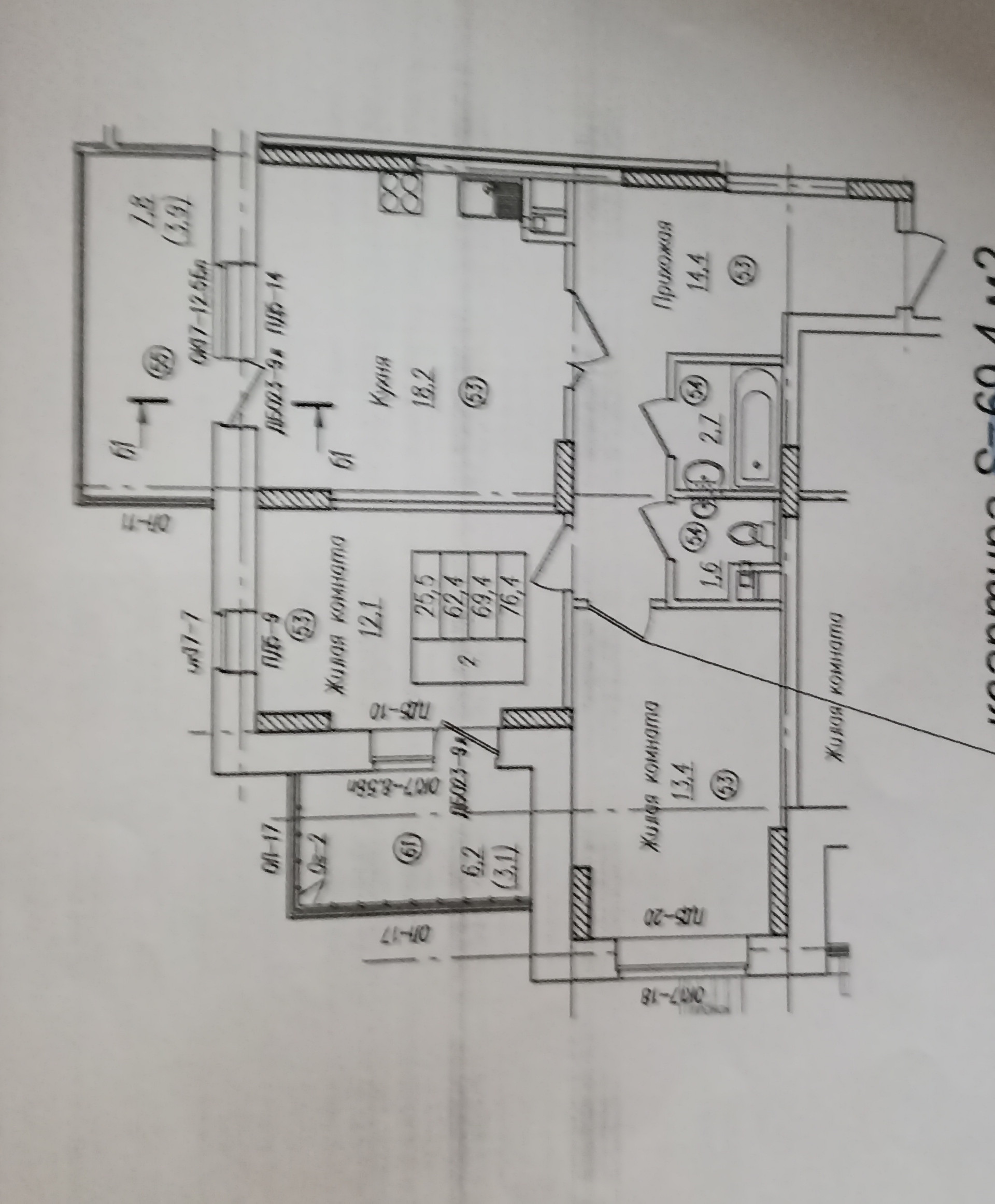 Общая площадь 62.5 м2
