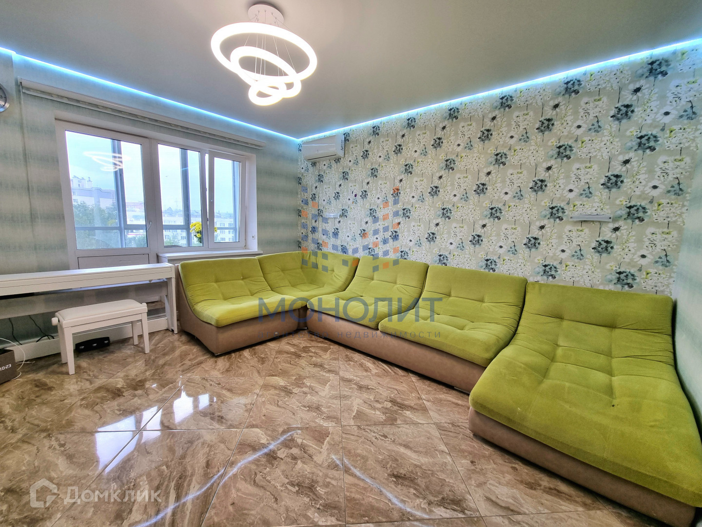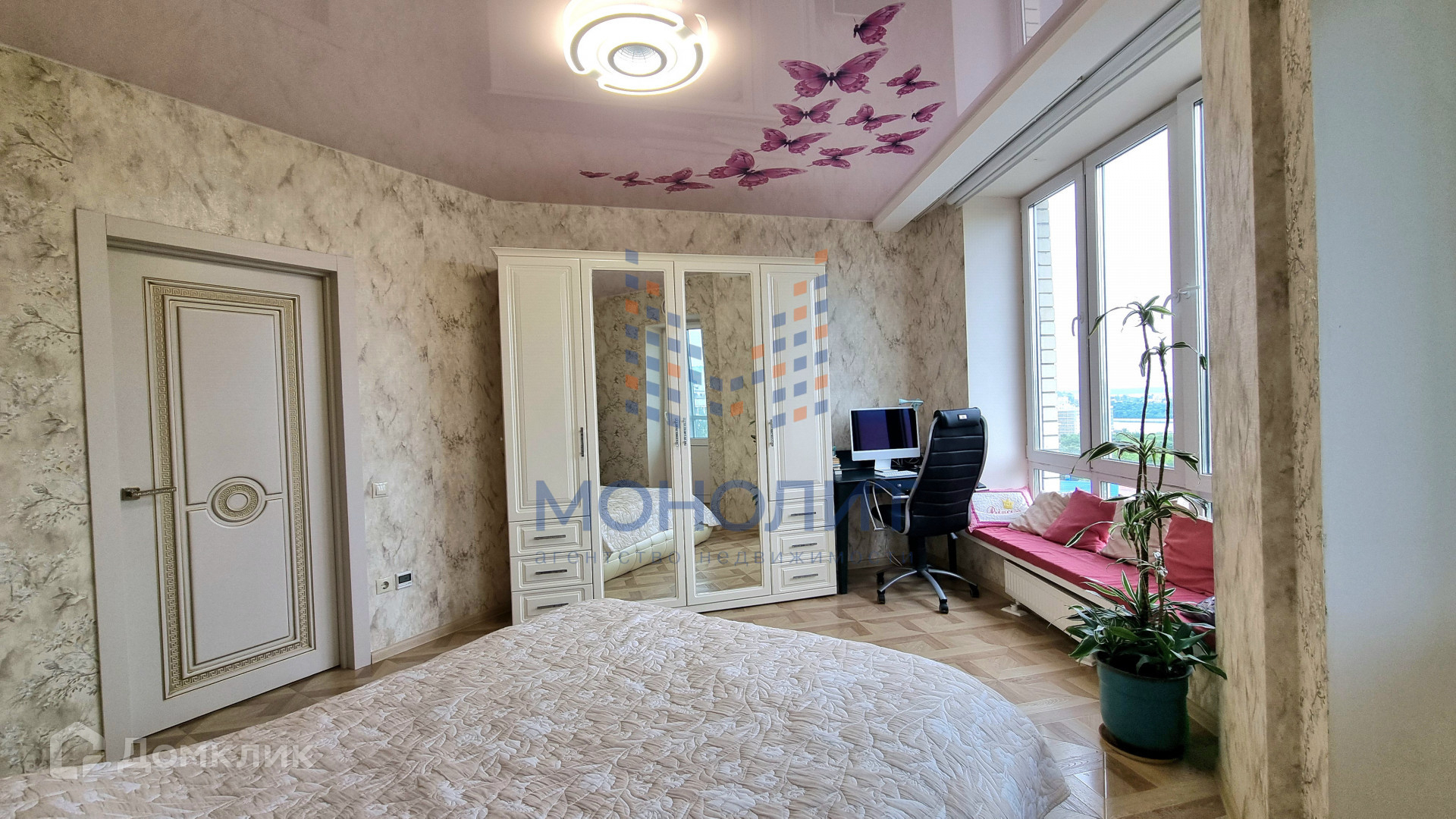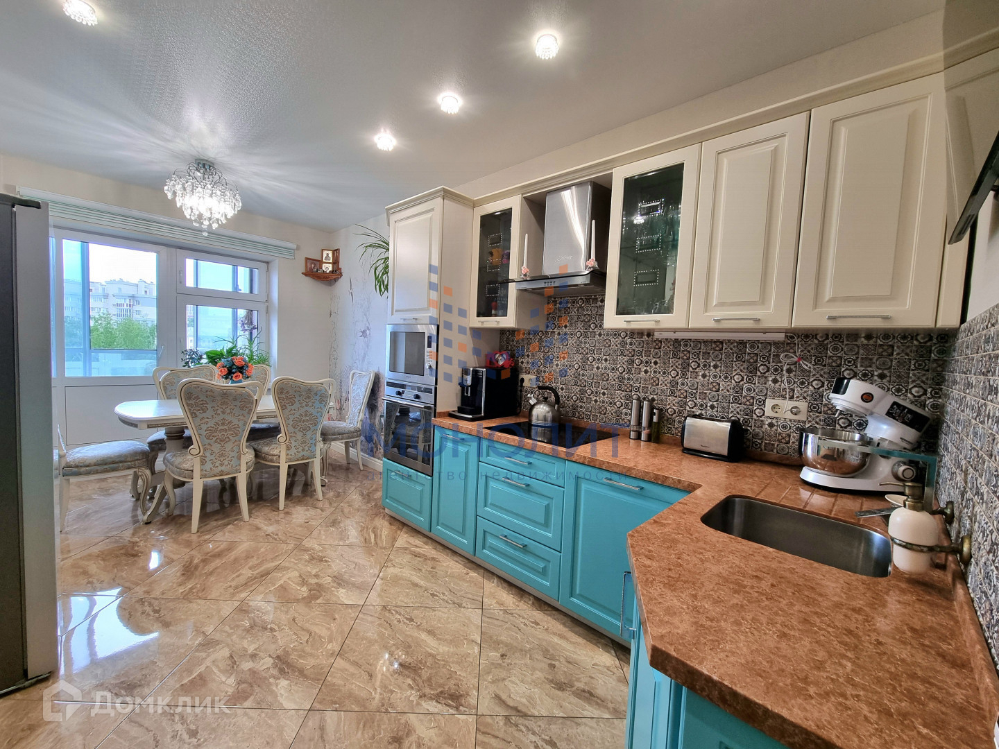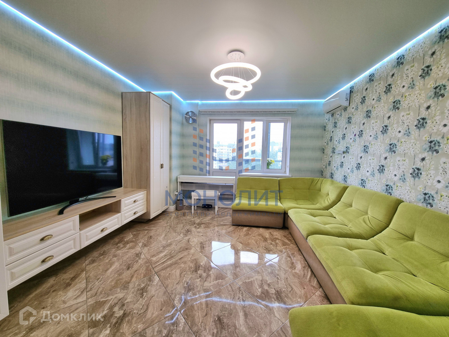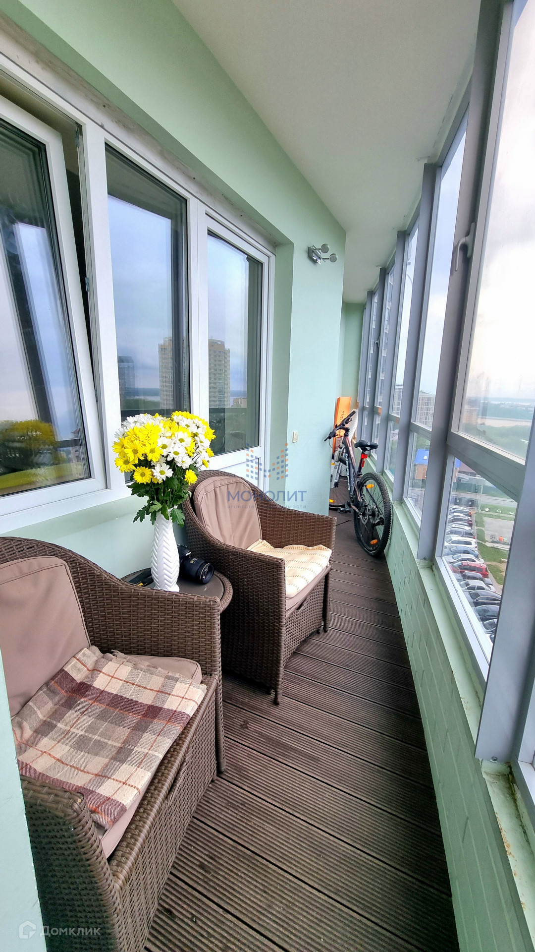 качественный ремонт: пол керамогранит и паркет, во всех комнатах тёплый пол, натяжные потолки, 2 санузла полностью отделаны плиткой, на балконе большие панорамные окна, на полу палубная доска;
