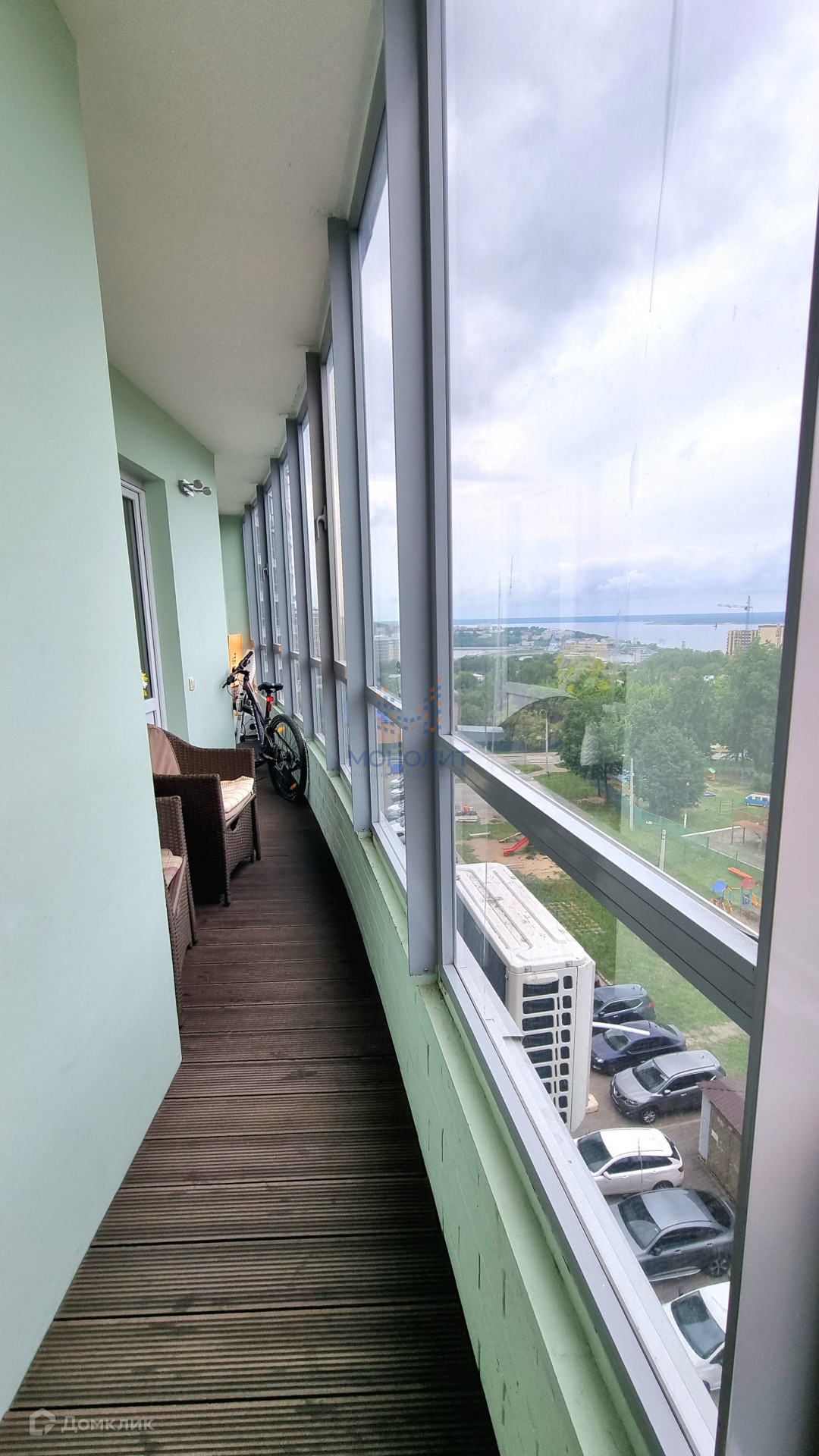 окна выходят на Волгу;