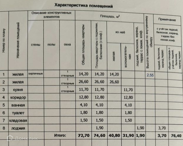Общая площадь 76.4 м2