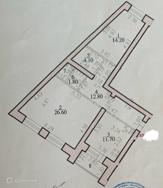 Жилая площадь 40.8 м2