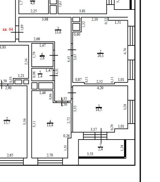 Общая площадь 68 м2