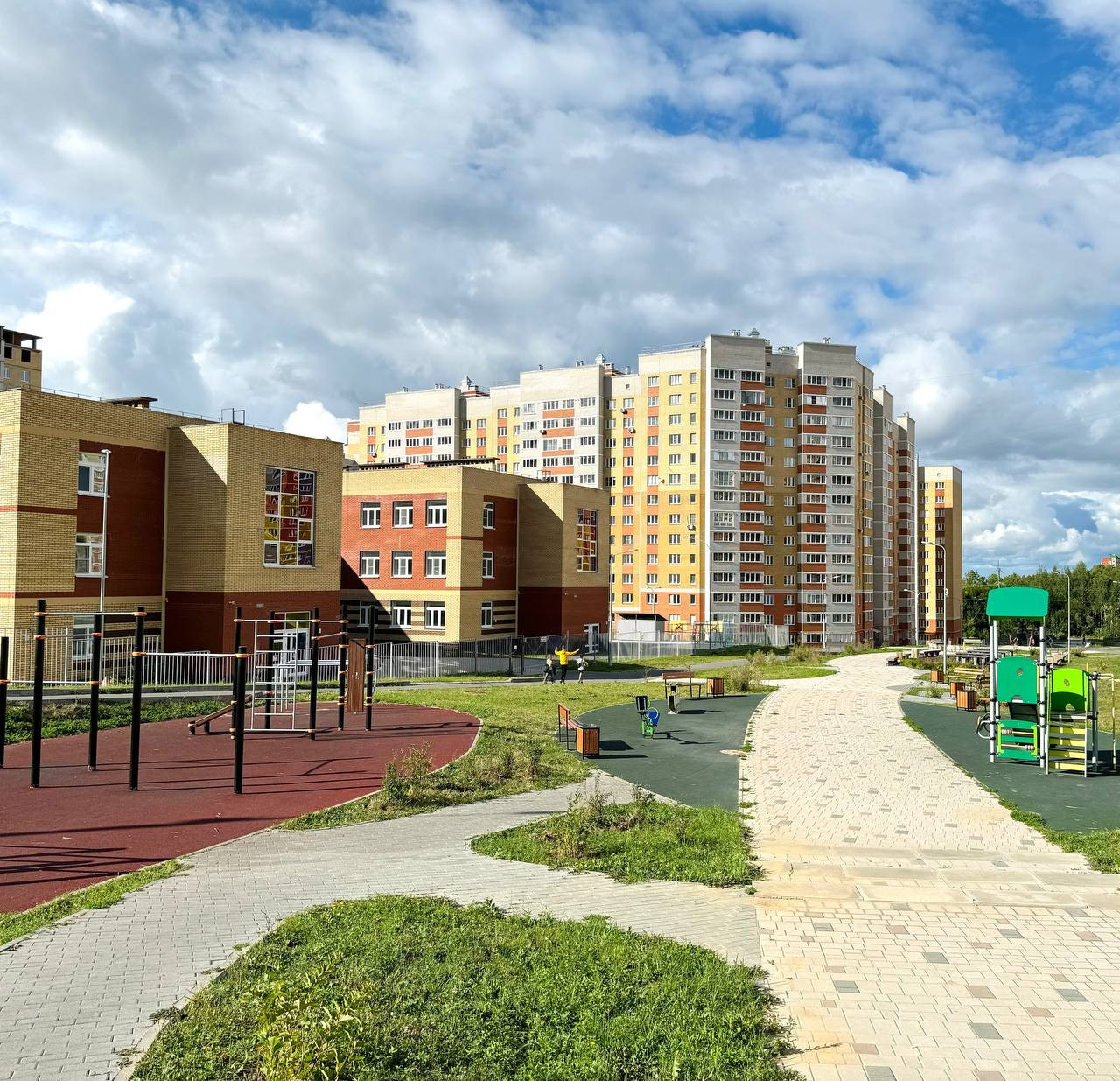 Развитая инфраструктура района, новая современная школа и детсады - в шаговой доступности, во дворе.