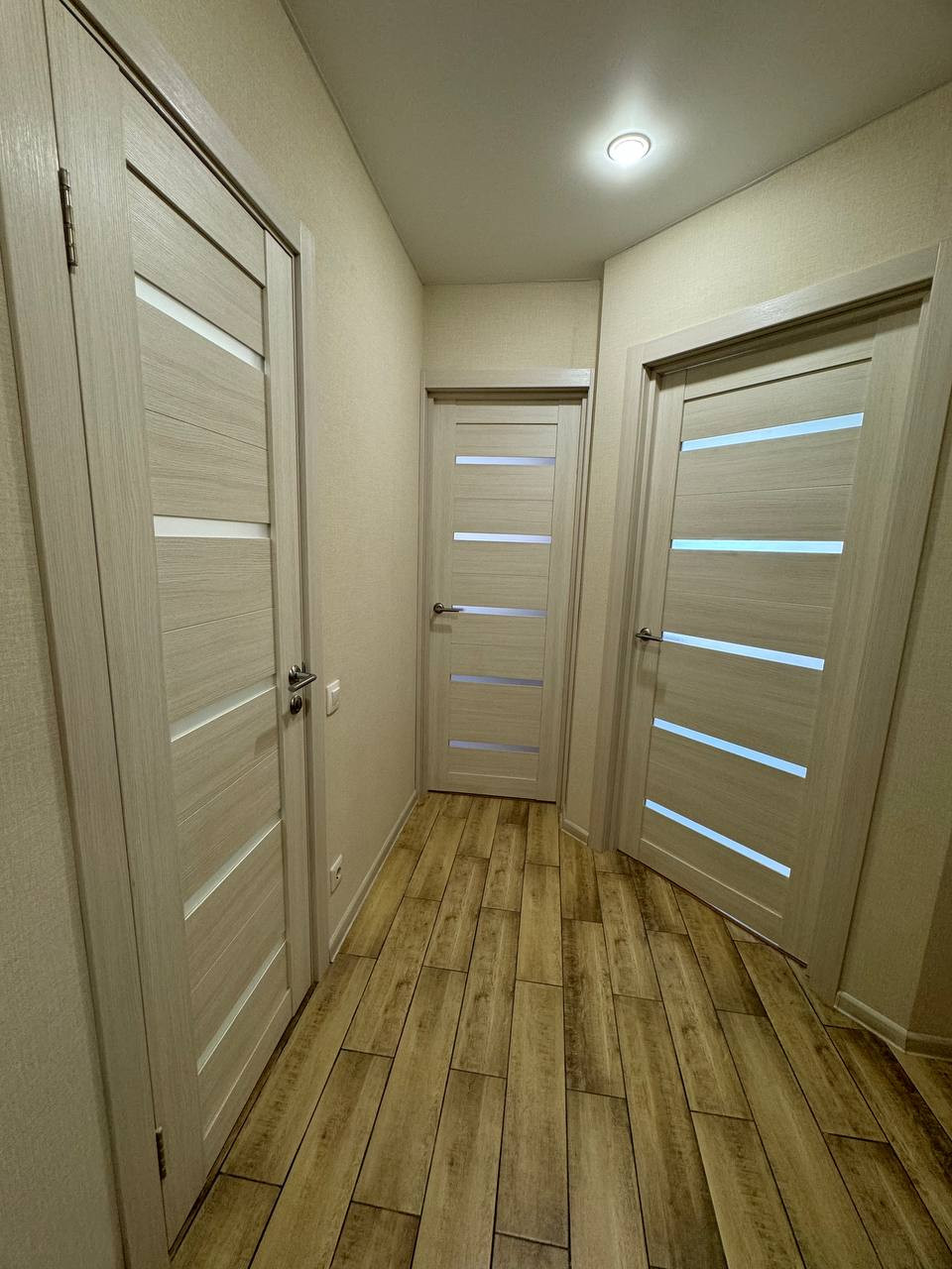 В прихожей, ванной и на кухне- теплый пол.