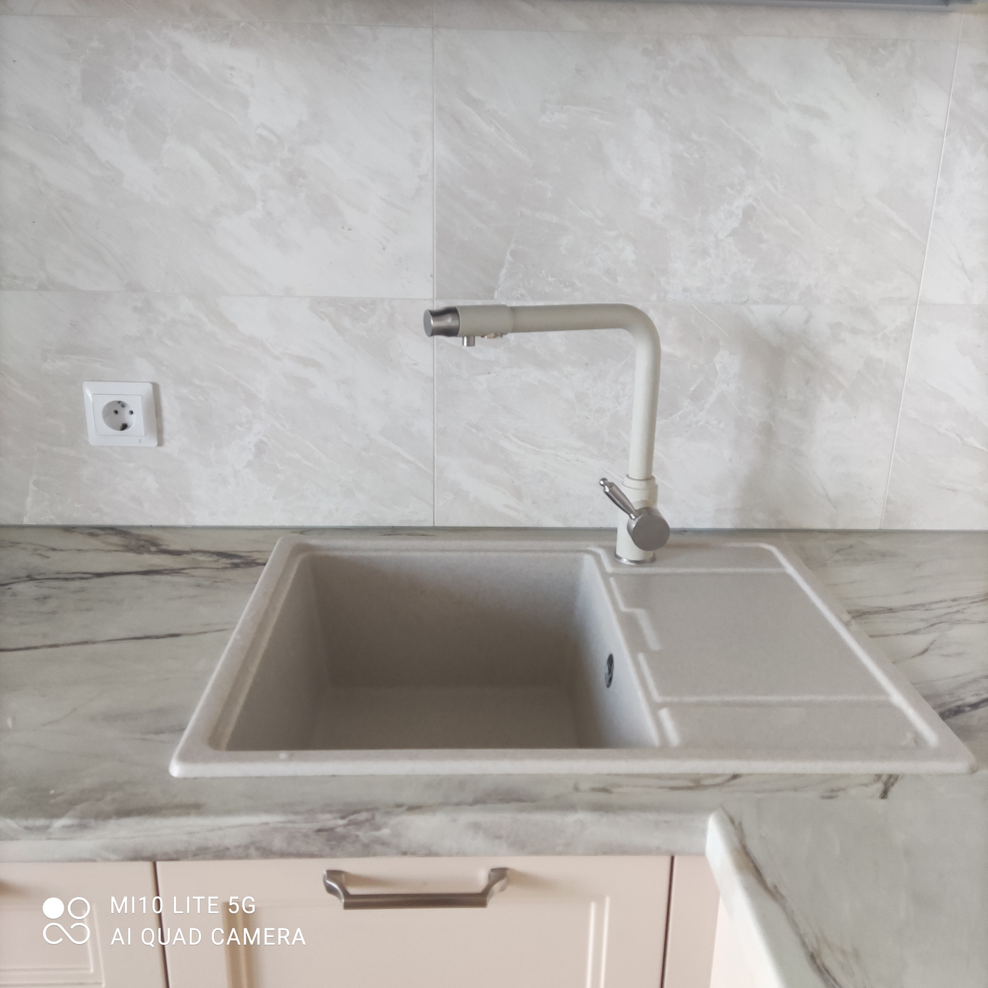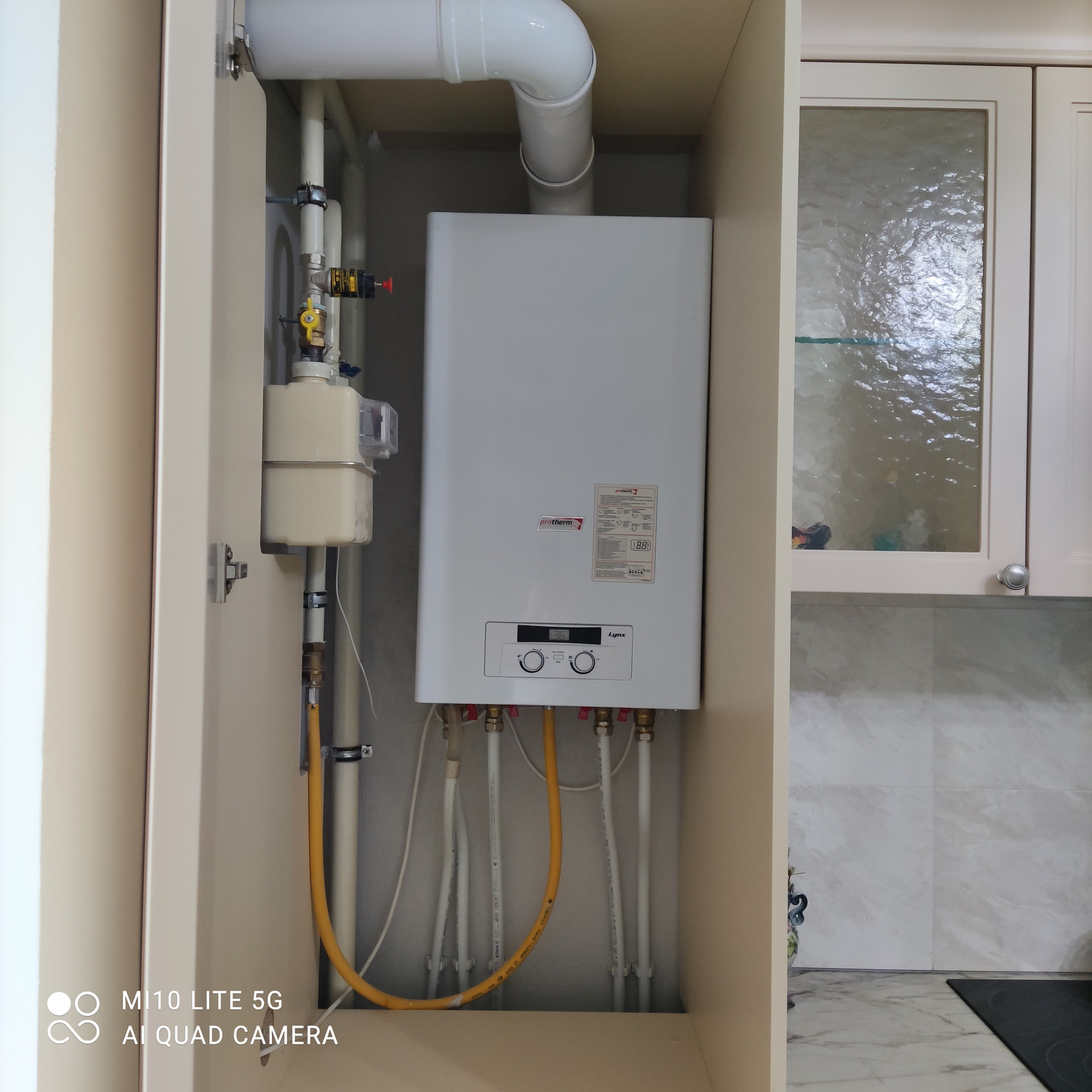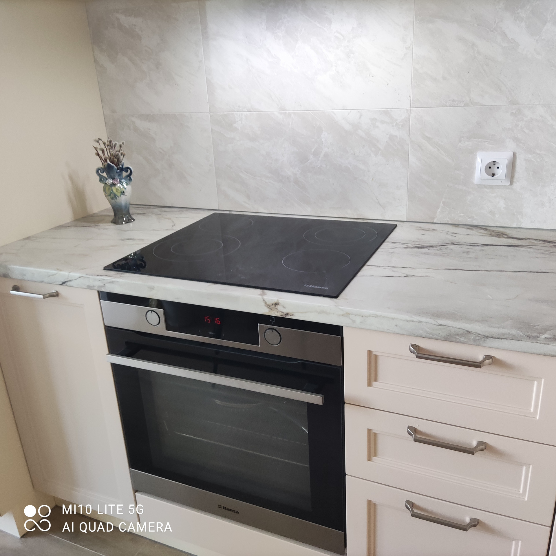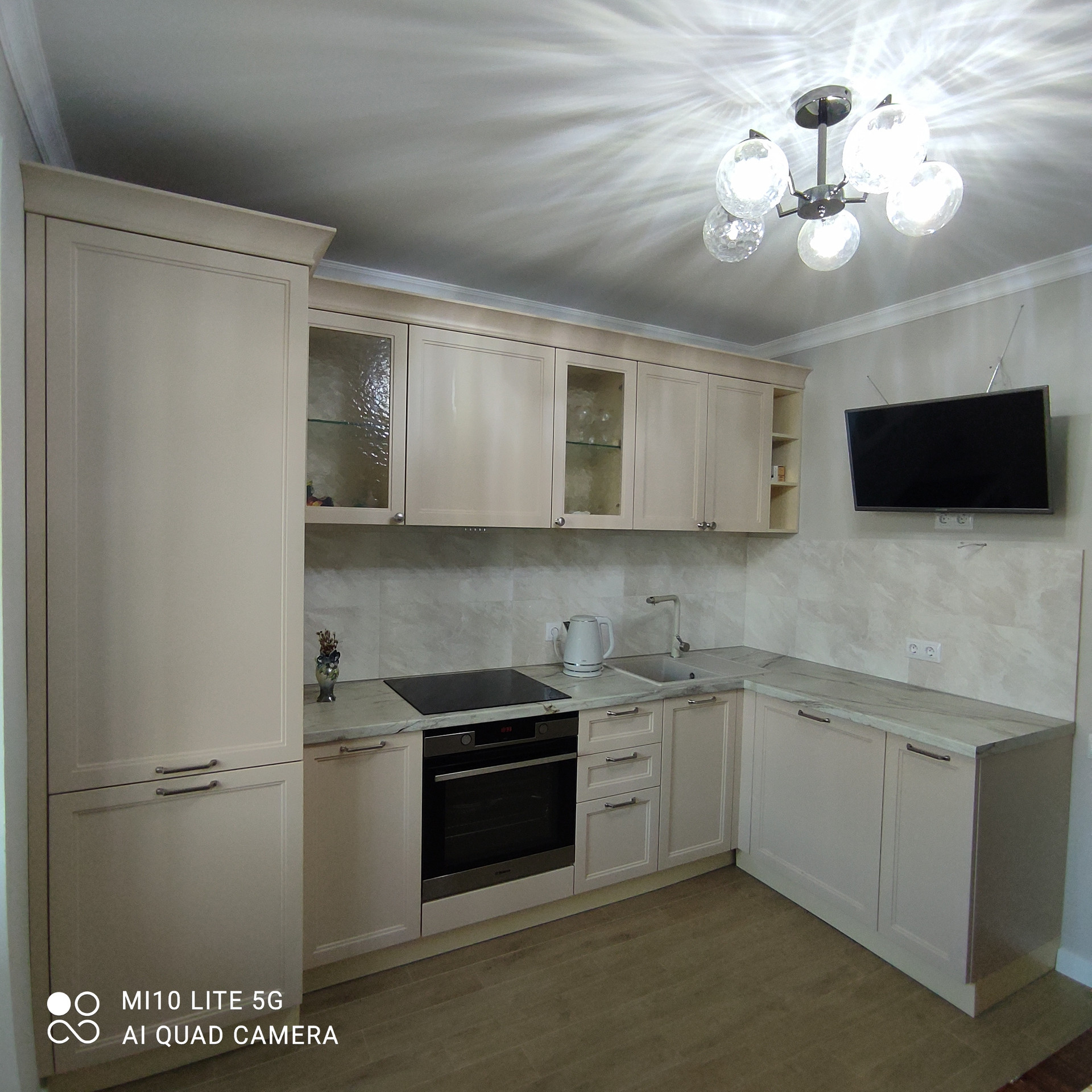 Установлен отличный кухонный гарнитур (фабрика Мосман) со встроенной техникой.