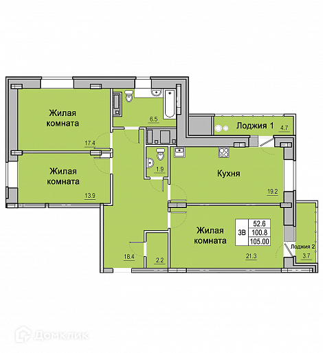 Общая площадь 104.8 м2