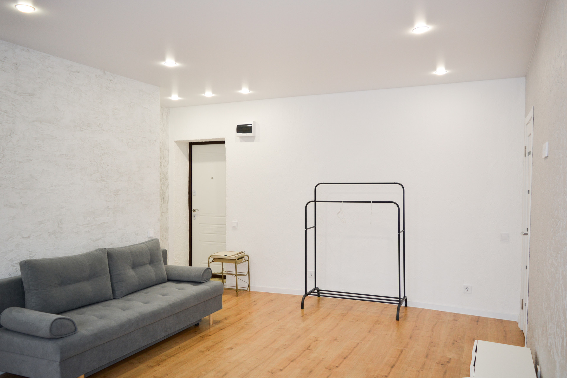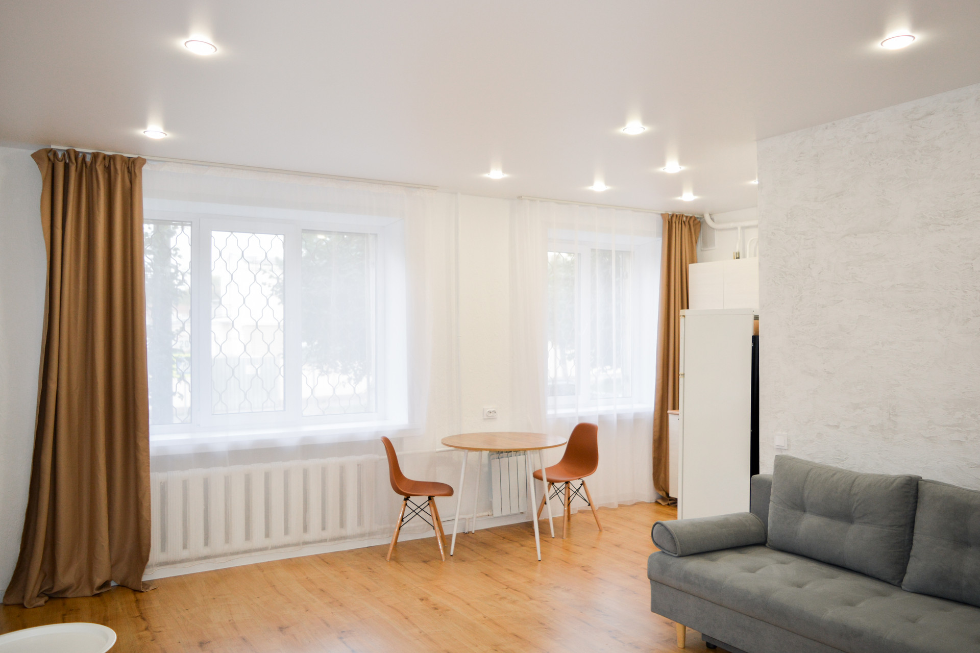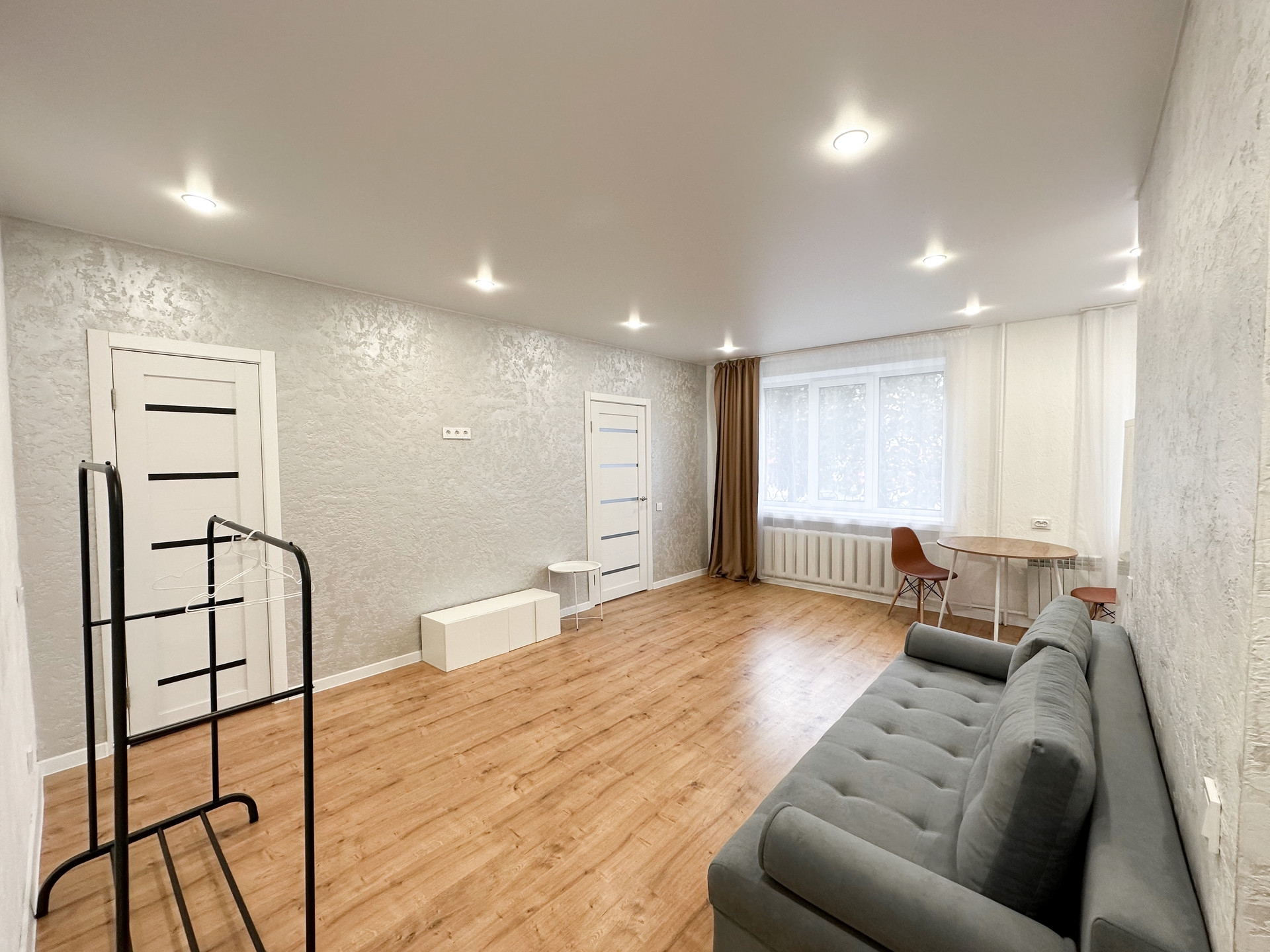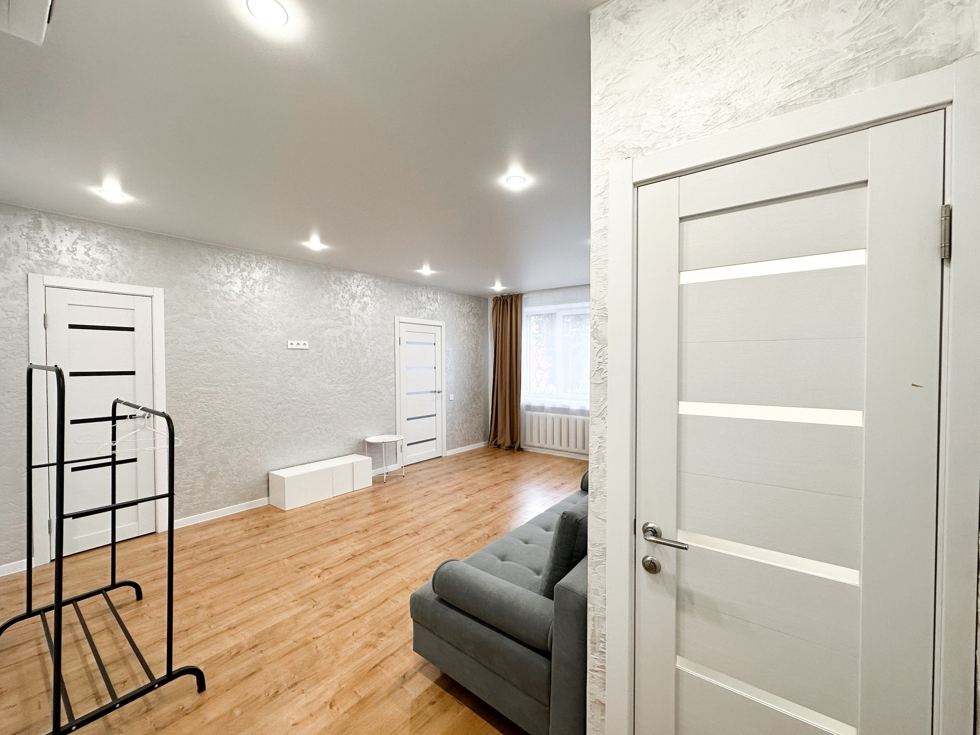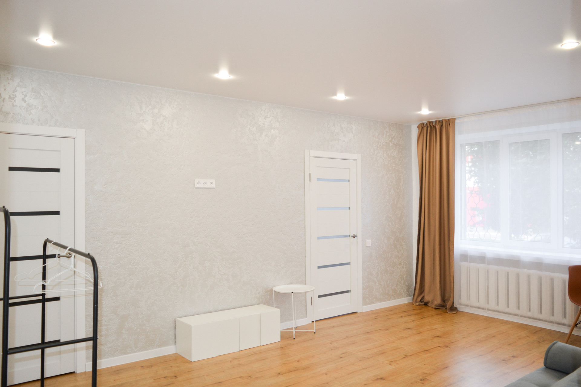 -на полу по всей квартире лежит ламинат,потолки натяжные.