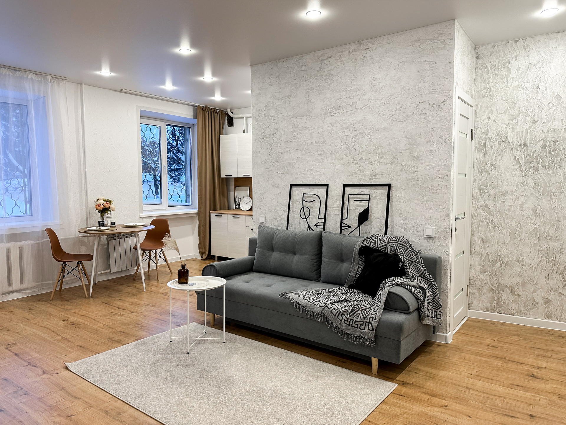 -удобная планировка, гостиная с кухней и отдельная спальня.