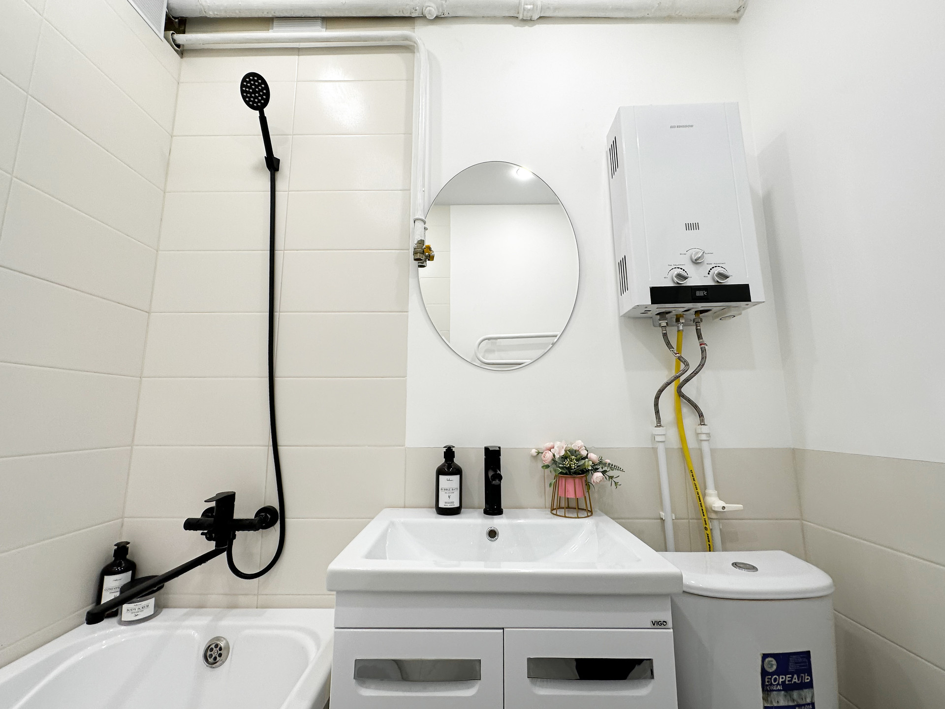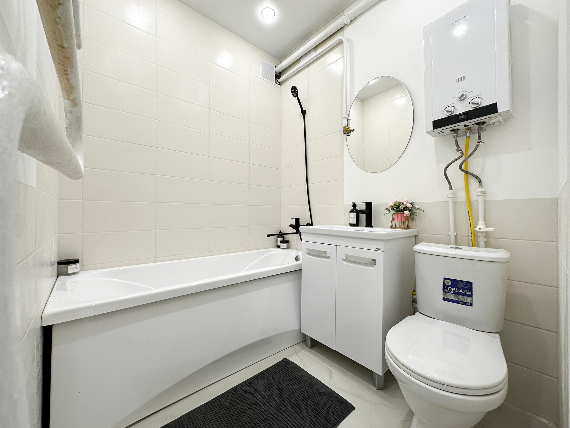 -совмещенный сан.узел в кафеле,вся сантехника новая, новый котел.
