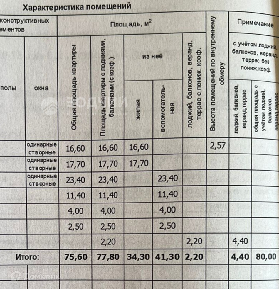 Общая площадь 75.6 м2
