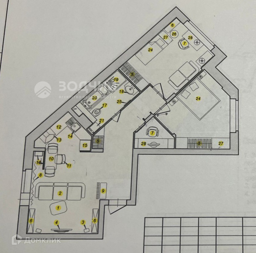 Жилая площадь 34.3 м2