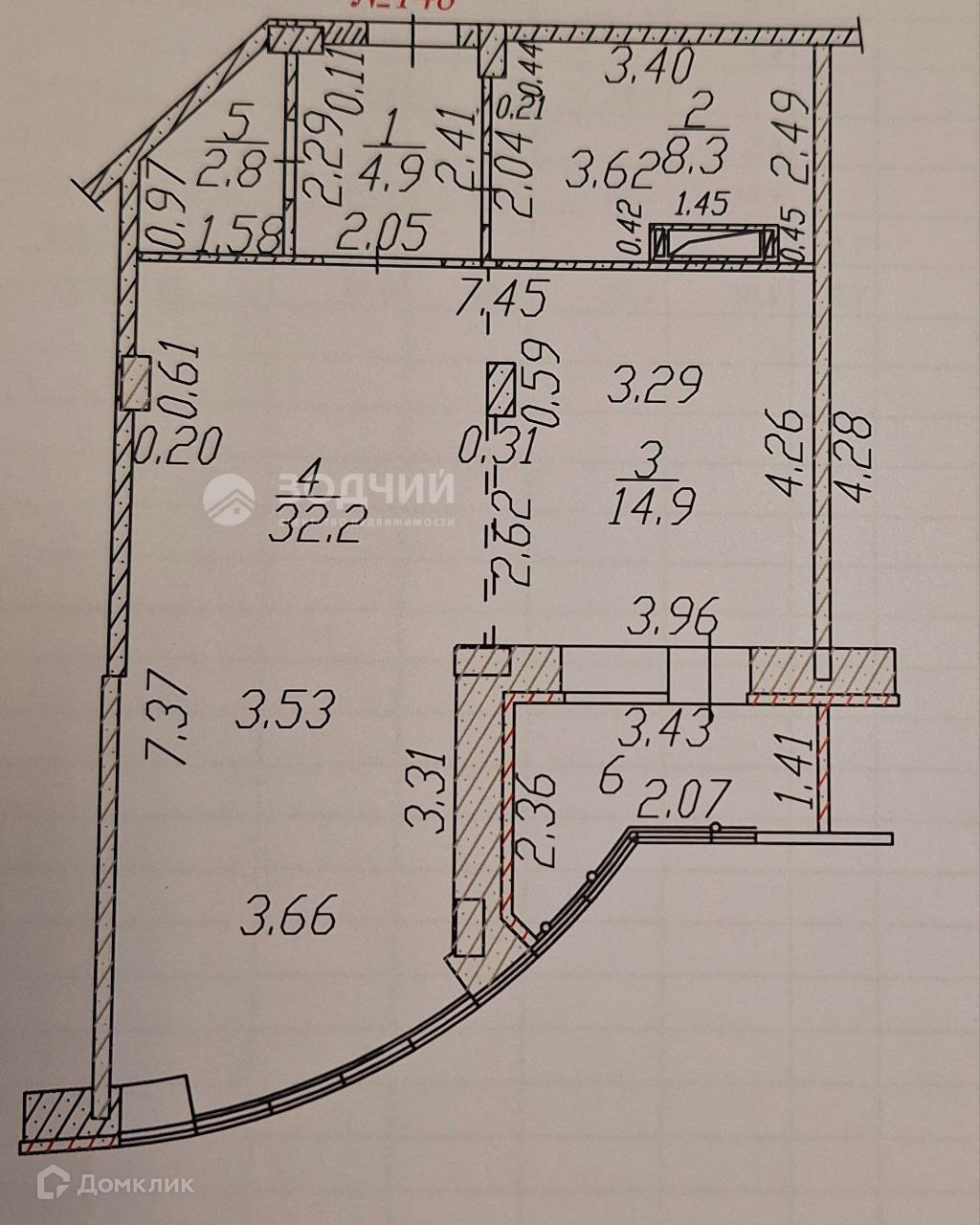 Жилая площадь 32.2 м2