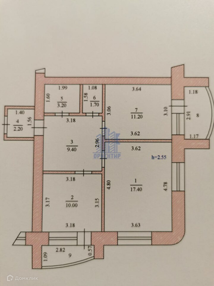 Общая площадь 61.8 м2